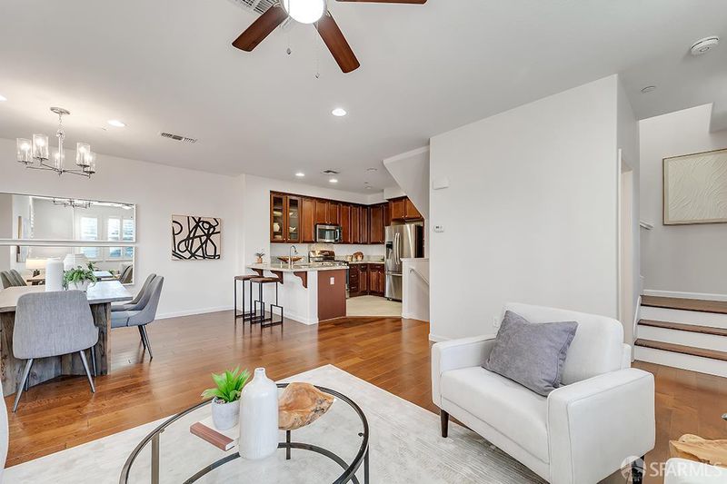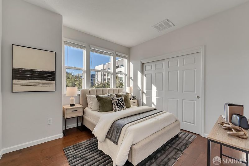 Sophisticated corner townhome in Milpitas' desirable Midtown district. This beautiful residence offers abundant natural light, elevated ceilings, and a refined open-concept layout. The kitchen is appointed with stone countertops, stainless steel appliances, and generous cabinetry. Both bedrooms function as private suites, including a spacious primary suite with walk-in closet and dual-vanity bath. Additional features include updated flooring, efficient climate systems, dual-pane windows, and an attached 2-car garage with interior access. Positioned near major transit options, freeways, shopping, dining, and key Silicon Valley corridors, this home delivers exceptional convenience in a well-maintained community. Walkable to BART, excellent nearby schools, shopping centers, and malls.