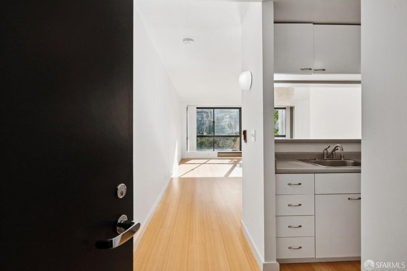 Bright and airy studio overlooking the peaceful garden courtyard. Features include a charming bay window, defined sleeping alcove, generous walk-in closet, and a sleek open-concept kitchen. Convenient shared laundry on the same floor. Residents enjoy access to a sunny outdoor pool and nearby member-only fitness center. Ideally situated just moments from SFMOMA, the Financial District, and some of the city's best dining and cafes.