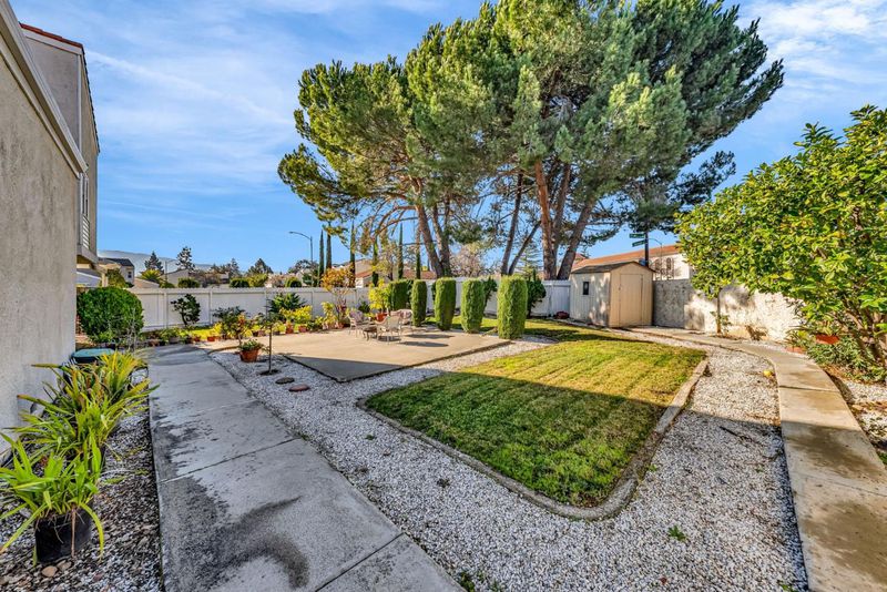 WOW! A rare opportunity to own a charming single family home in the highly desirable Cambrian neighborhood of San Jose. Situated on a unique corner lot, the home is thoughtfully positioned to one side, maximizing the expansive lot and offering exceptional potential for future expansion or ADU. A private gate welcomes you into your own lush garden retreat, where flowers and fruit trees bloom year round. Your personal oasis in the heart of Silicon Valley. This spacious 1,900 SqFt home features 4 BRs and 2.5 BAs, ideal for comfortable family living. Step inside to soaring vaulted ceilings and large windows that fill the home with abundant natural light. The formal dining area, accented by a crystal chandelier, flows seamlessly into the kitchen, perfect for everyday meals and entertaining. A bonus glass-enclosed room provides flexible space for yoga, exercise, or a peaceful retreat. A convenient half bath is located downstairs for guests. Indoor laundry. Primary suite offers a full en-suite bathroom and a generous walk-in closet. Additional bedrooms are well sized with pleasant views and versatility for a home office or guest room. Prime location close to freeways, major hi-tech HQs, shopping, dining, and TOP RATED school. A wonderful place to call home and invest in your future!