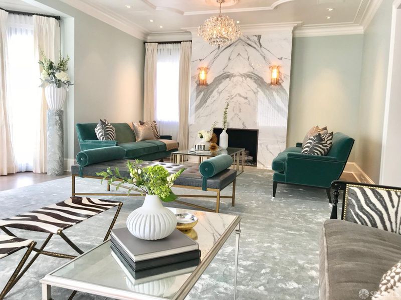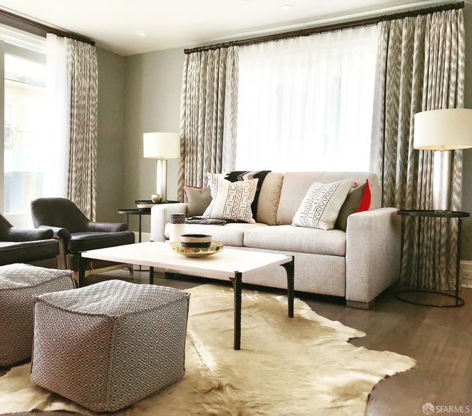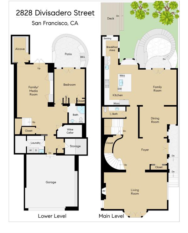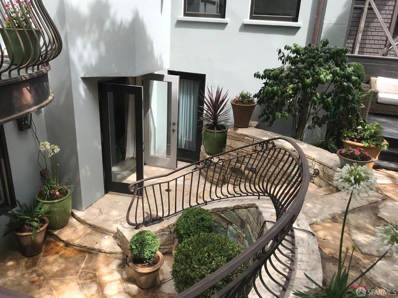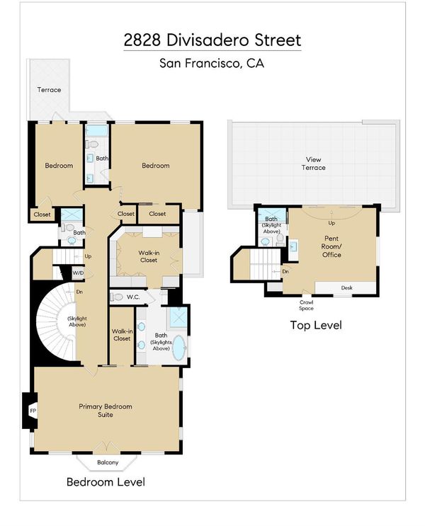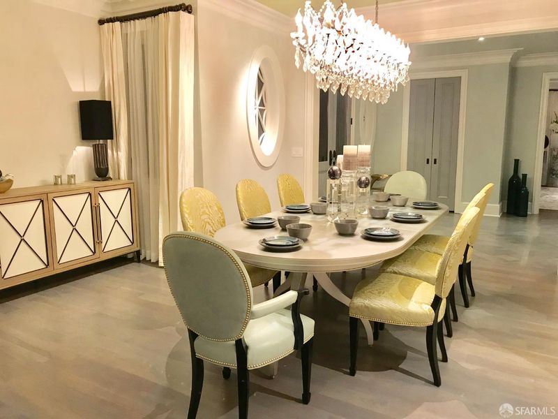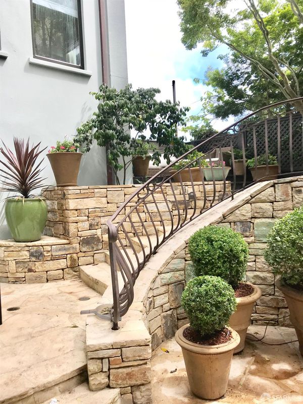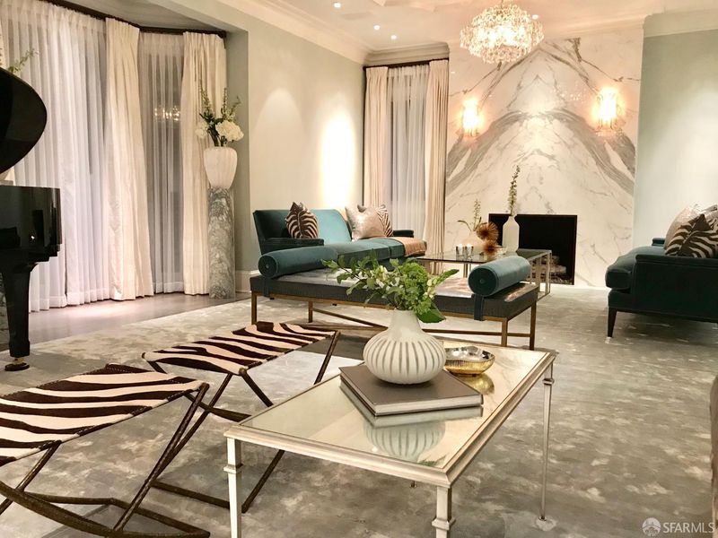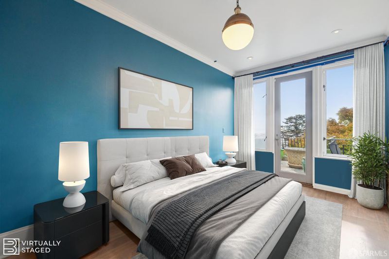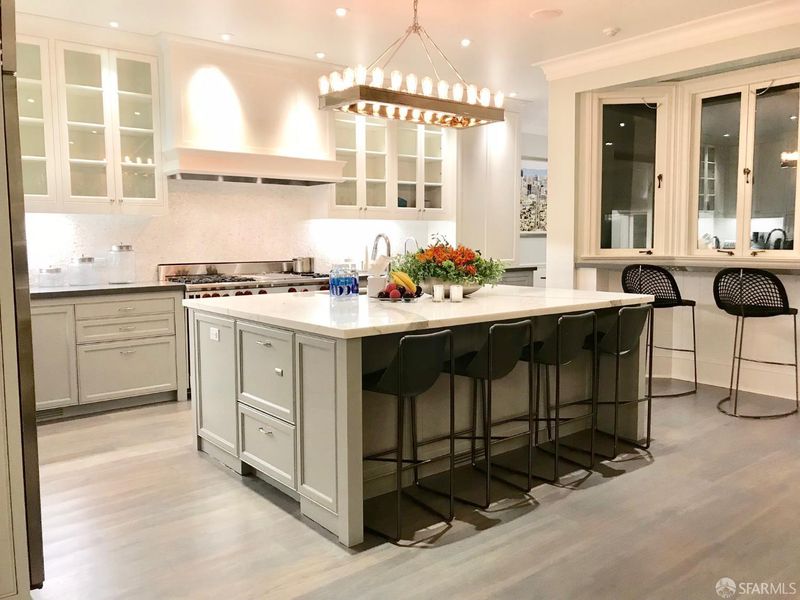Beautiful Cow Hollow home with sweeping Golden Gate Bridge and Bay views! Elegant entry flows to an expansive living room showcasing a bay window, fireplace, and a picture window with fantastic Bridge and Bay views. A formal dining room opens to a generous family room with French doors to the garden. The expansive kitchen enjoys a large quartz-topped island with seating, deluxe appliances and a breakfast area with banquette, surrounded by windows. Up a skylit staircase are 3 bedrooms, 3.5 baths, a library, and laundry. The luxurious corner primary suite enjoys 3 exposures, a balcony framing Golden Gate Bridge views, a gas fireplace, 2 walk-in closets, and a serene Carrera marble bath with radiant heat, soaking tub, glass shower, and double vanity. The southeast bedroom boasts a terrace with northeastern views. The top level offers a spectacular pent room with wet bar, full bath, and a sprawling terrace overlooking Alcatraz, Fort Mason, and the Bay. In the garden, multiple terraces and a built-in BBQ provide ideal space for entertaining. Bring your contractor! Property has suffered some water damage and will need to be remediated, presenting a unique opportunity for a buyer to customize, realize value, and secure a view home. Note that the light fixtures are excluded.