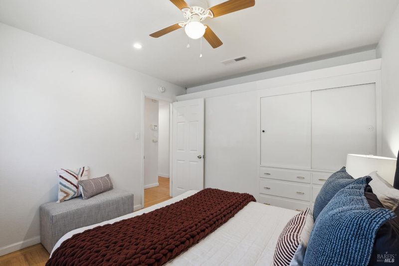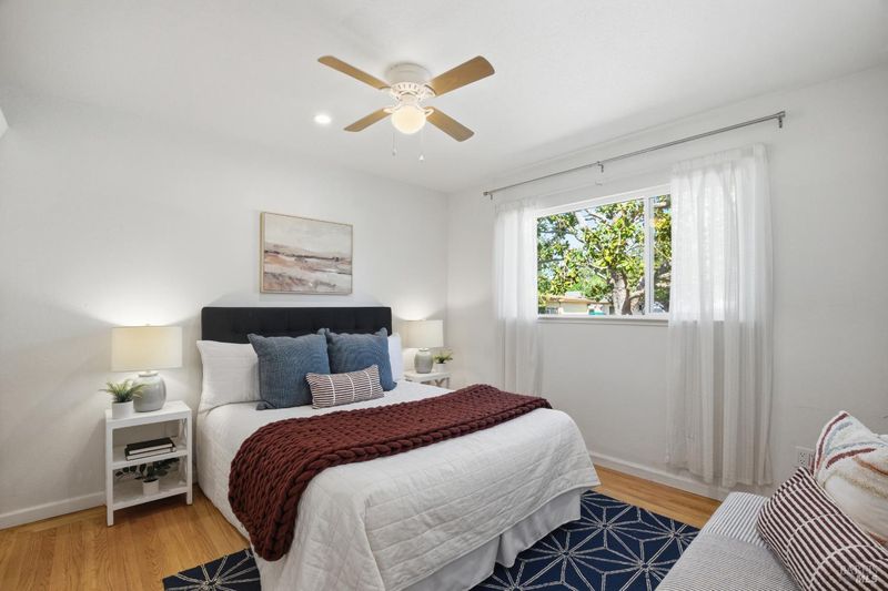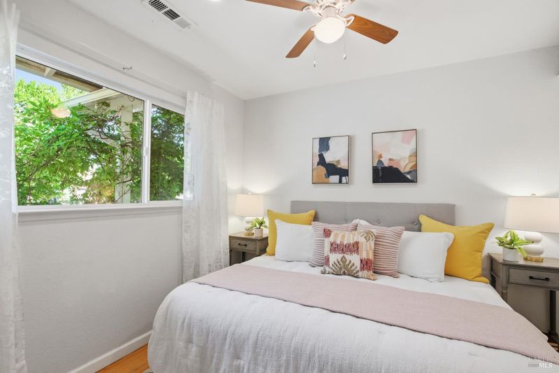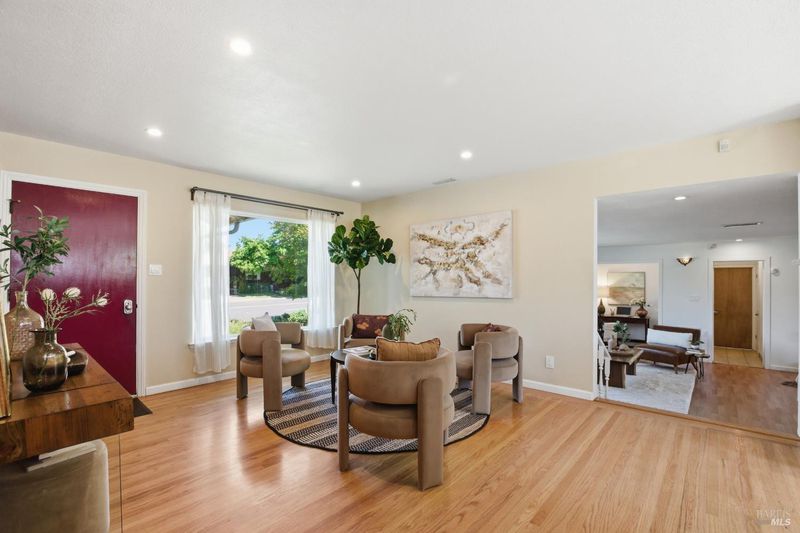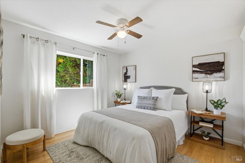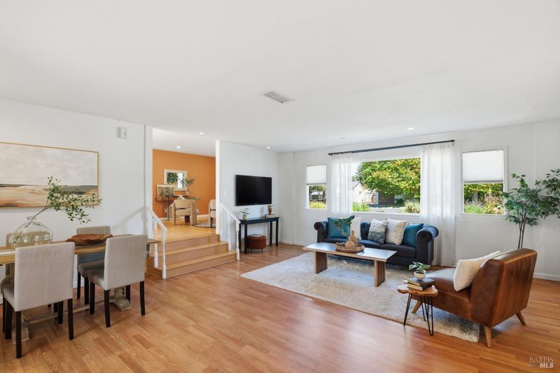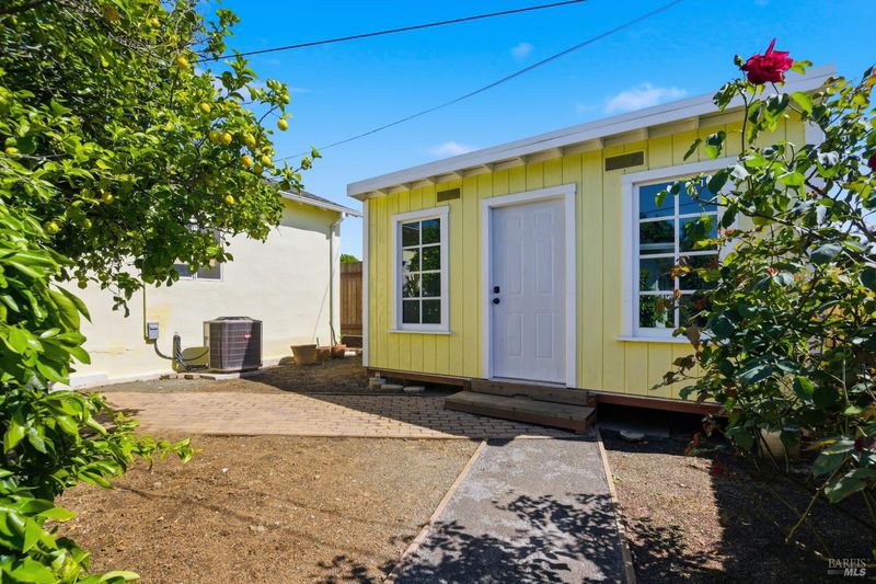 Prepare to be charmed! You'll love this beautiful circa 1953 rancher located in the established Rancho Fleming neighborhood of North Vallejo with mid-century charm that has been enhanced for today's lifestyle. Features include its original mid-century freestanding cone fireplace, as well as original hardwood flooring throughout, all combined with a tastefully updated kitchen that has been opened up to the adjoining spaces and also leads to the back garden with raised beds, making it ideal for entertaining. The bathrooms have been remodeled in keeping with its mid-century era and come complete with striking and fun penny tile finishes. For the artistic minds or craftspeople, there's an additional space that served as an art studio for the current owner, a soundproof music room, and even a large outdoor shed for additional storage. Curb appeal is A+ with its sprawling presence and perfect A-frame porch, both true to its era. Ideally located approximately 20 minutes to Berkeley or Walnut Creek, 20 minutes to Napa, or 20 minutes to Marin. Be at the Vallejo or Benicia waterfronts in 10 minutes, or sail to SF, just a short ferry ride away.