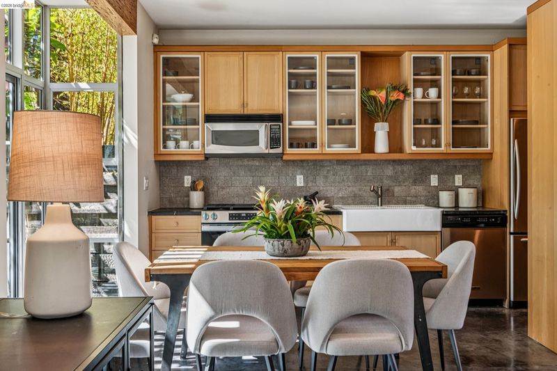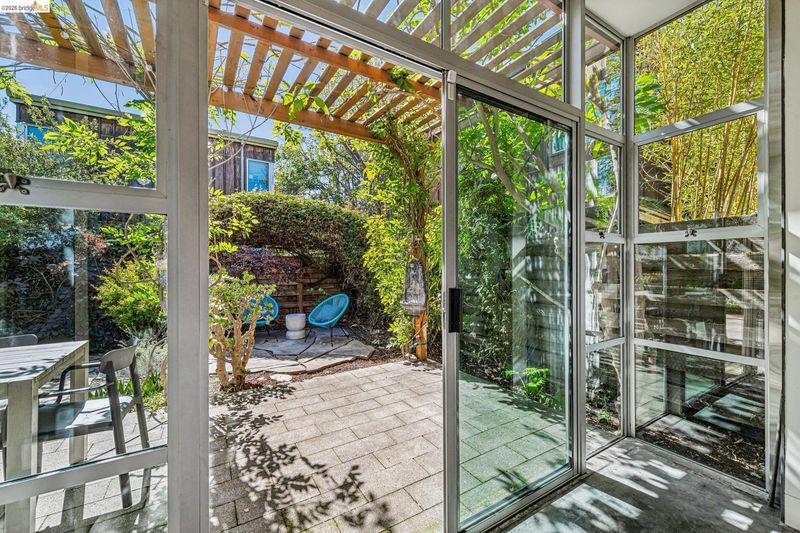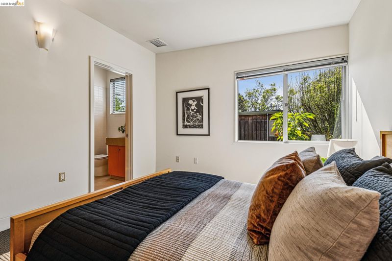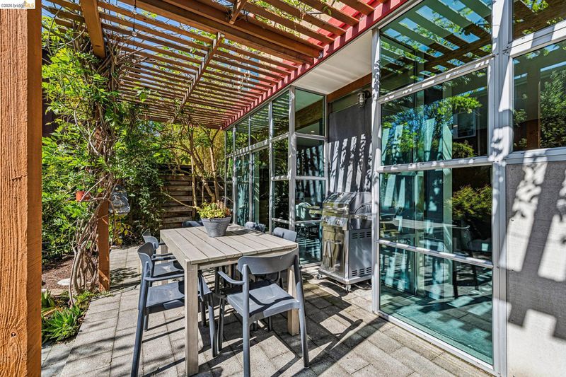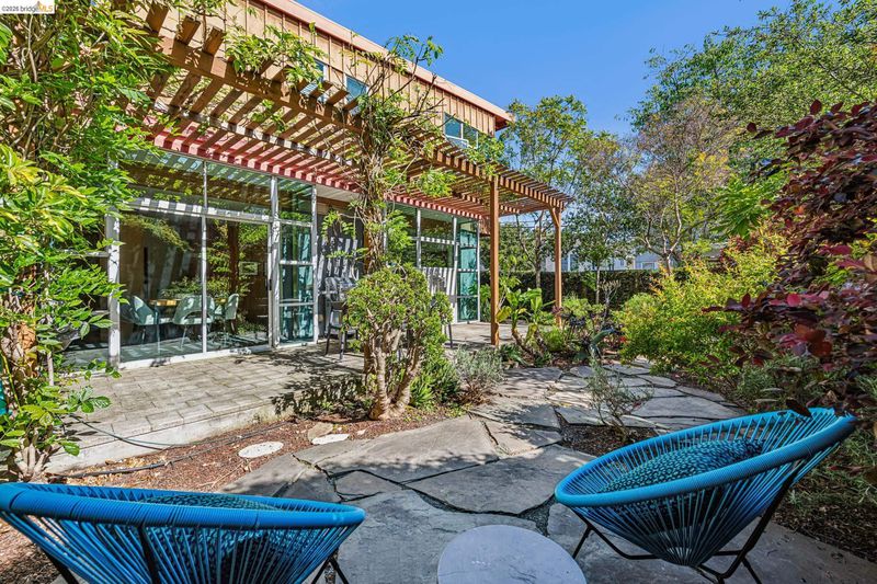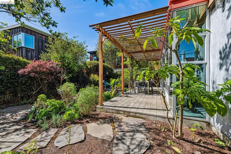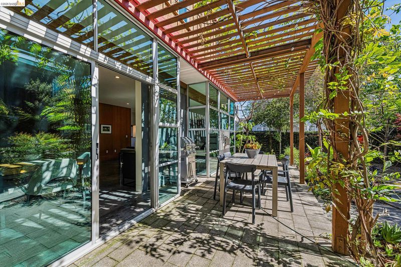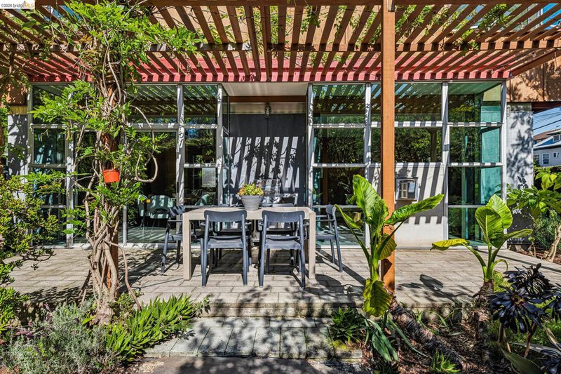 Experience a masterclass in organic modernism with this striking sanctuary envisioned by the renowned Wilson Associates. Designed to inspire a calm, creative lifestyle, the home centers around a breathtaking open-concept main level where floor-to-ceiling glass, polished concrete floors, and warm wood paneling echo the textures of the natural world. At the heart of the residence is a gourmet, eat-in kitchen that balances style and utility, featuring airy light-wood cabinetry, expansive pantry storage, and multiple new appliances that cater to the modern chef. The transition to outdoor living is effortless via glass doors that lead to a private, professionally landscaped backyard. Here, a stone patio shaded by a a wisteria filled pergola offers an ideal setting for al fresco dining, while a winding flagstone path meanders through a lush, low-maintenance garden. The upper level is dedicated to rest and focus, offering sun-drenched bedrooms that each feature a private ensuite bathroom for a true hotel-at-home feel. The floor plan is completed by a dedicated office, equipped with integrated storage, providing an organized and quiet backdrop for remote work. Perfectly positioned for an effortless lifestyle, this residence is just moments from Ashby BART, tech shuttles, and local cafes. Enjoy being minutes from the weekend Farmer’s Market and the legendary Berkeley Bowl, placing the very best of East Bay culture and convenience right at your doorstep.