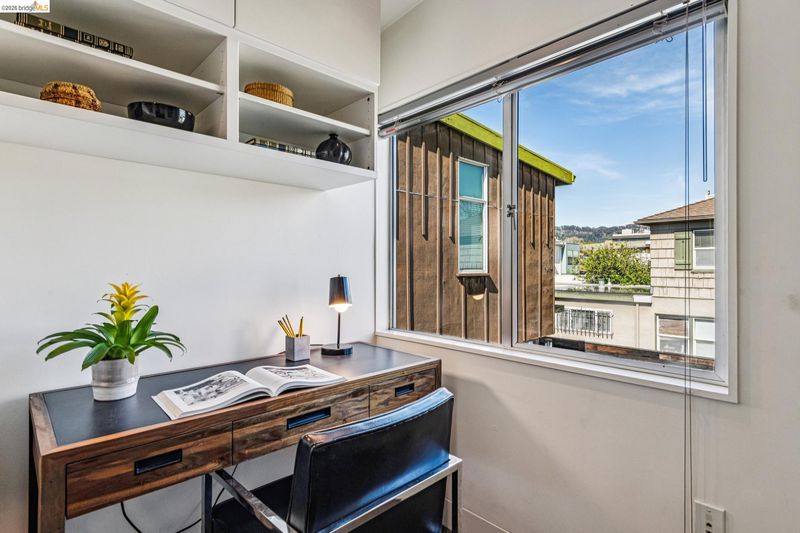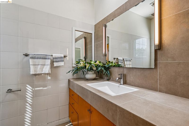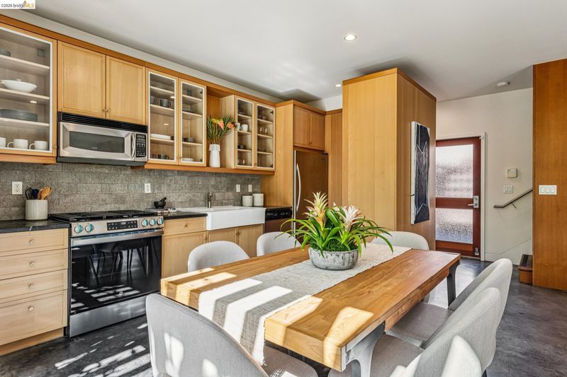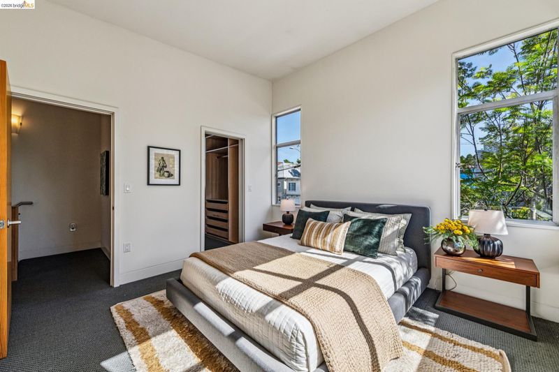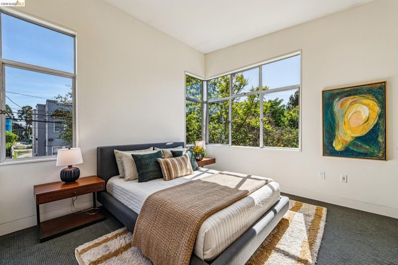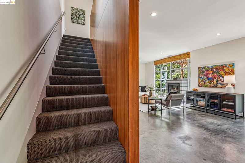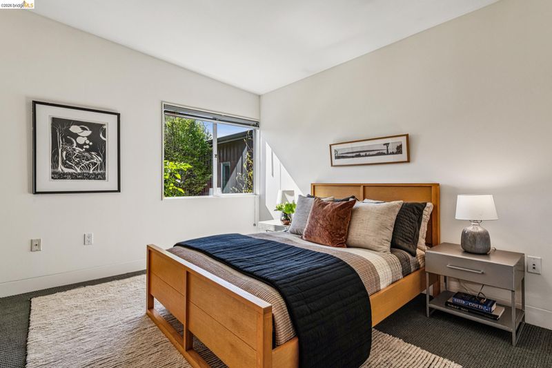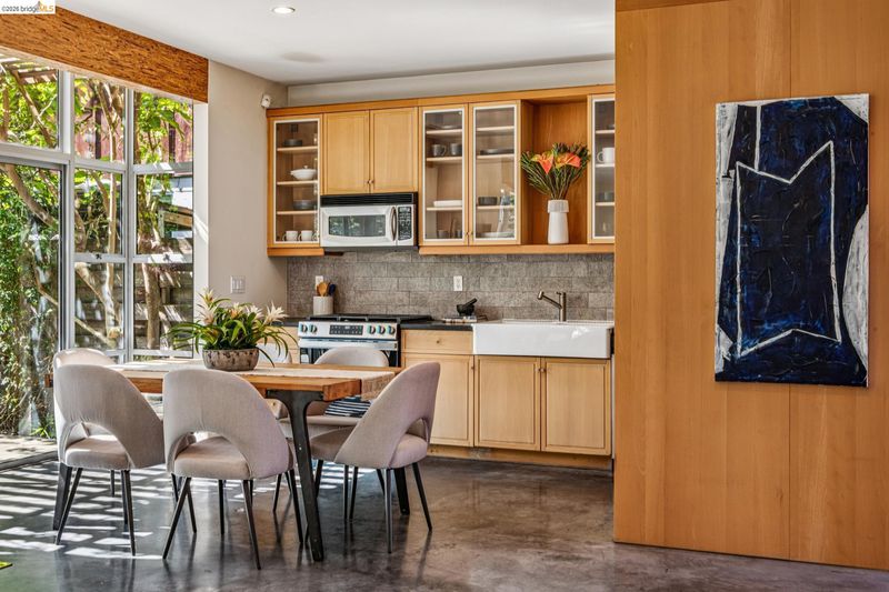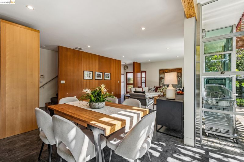 Experience a masterclass in organic modernism with this striking sanctuary envisioned by the renowned Wilson Associates. Designed to inspire a calm, creative lifestyle, the home centers around a breathtaking open-concept main level where floor-to-ceiling glass, polished concrete floors, and warm wood paneling echo the textures of the natural world. At the heart of the residence is a gourmet, eat-in kitchen that balances style and utility, featuring airy light-wood cabinetry, expansive pantry storage, and multiple new appliances that cater to the modern chef. The transition to outdoor living is effortless via glass doors that lead to a private, professionally landscaped backyard. Here, a stone patio shaded by a a wisteria filled pergola offers an ideal setting for al fresco dining, while a winding flagstone path meanders through a lush, low-maintenance garden. The upper level is dedicated to rest and focus, offering sun-drenched bedrooms that each feature a private ensuite bathroom for a true hotel-at-home feel. The floor plan is completed by a dedicated office, equipped with integrated storage, providing an organized and quiet backdrop for remote work. Perfectly positioned for an effortless lifestyle, this residence is just moments from Ashby BART, tech shuttles, and local cafes. Enjoy being minutes from the weekend Farmer’s Market and the legendary Berkeley Bowl, placing the very best of East Bay culture and convenience right at your doorstep.
