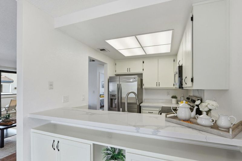 Discover this beautiful, private end-unit 2-bedroom & 2-bath condo in the desirable Carson neighborhood. Nestled on a cul-de-sac in a park-like setting. The spacious living room features vaulted ceilings and a cozy fireplace. Sliding glass doors open to a generous balcony, perfect for relaxing or entertaining, surrounded by mature trees. The bright kitchen boasts new granite countertops, stainless steel appliances, a deep sink, a breakfast bar and separate dining area. The master bedroom includes an ensuite bathroom and walk-in closet, while the second bedroom is ideal for family, guests, or a home office. Both bedrooms feature new flooring. Additional highlights indoor laundry with washer and dryer, fresh interior paint, an assigned carport plus extra parking. A tranquil, well-maintained complex with low HOA dues. Conveniently located near VTA Light Rail, major highways 85, 87, 101, Oakridge Mall, Trader Joes, Costco, shopping, dining, parks, trails, and more. Perfectly situated, this is a hidden gem!