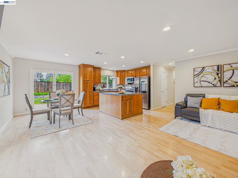 Welcome to this beautifully upgraded single-story home nestled in a quiet cul-de-sac in the highly desirable Valley Trails neighborhood of Pleasanton. Offering 4 bedrooms, 2 bathrooms, and approximately 1,576 sq ft of light-filled living space on a spacious 6,481 sq ft lot, this home blends comfort, functionality, and location perfectly. Step inside to a bright and inviting floor plan featuring a spacious living room, separate family room, and a formal dining area ideal for both everyday living and entertaining. The updated eat-in kitchen flows seamlessly into the main living spaces, creating a warm and connected feel throughout the home. The primary suite offers a peaceful retreat with privacy and comfort, while three additional well-sized bedrooms provide flexibility for family, guests, or a home office. Both bathrooms have been tastefully upgraded with modern touches. Enjoy outdoor living in the generously sized backyard, complete with a concrete patio, and a grassy area perfect for relaxing evenings, entertaining, pets, or play. Located just minutes from downtown Pleasanton, top-rated schools, parks, shopping, dining, and easy access to I-580/I-680, this home offers unbeatable convenience in a prime location. Move-in ready, thoughtfully maintained, and NO HOA, this is a rare opportunity you won’t want to miss!