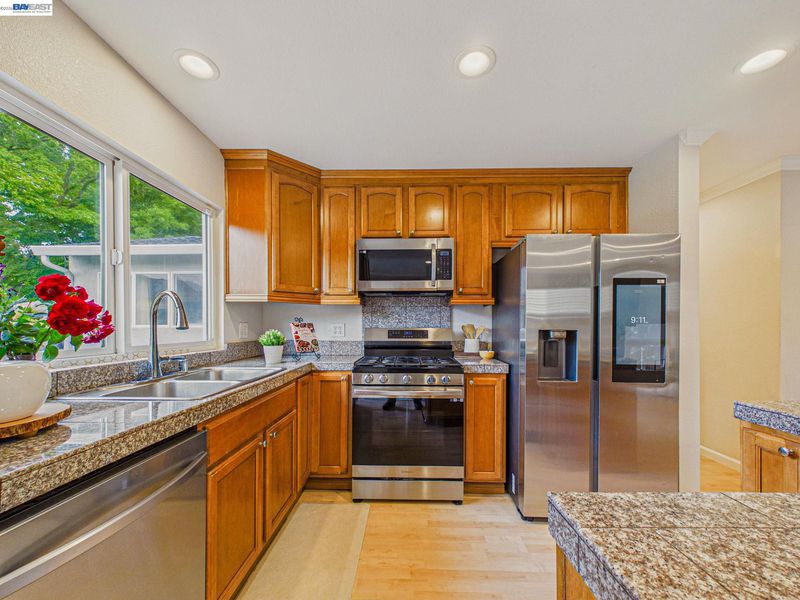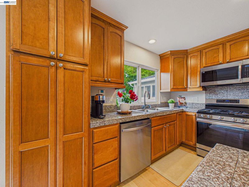 - Dishwasher, Gas Range, Microwave, Refrigerator, Self Cleaning Oven, Washer, Gas Water Heater, Stone Counters, Tile Counters, Disposal, Gas Range/Cooktop, Self-Cleaning Oven