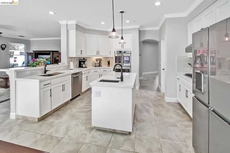 Welcome to Tuscany—one of Brentwood’s most desirable neighborhoods, known for its spacious lots and beautiful homes. This stunning single story offers exceptional curb appeal to welcome you and your guests. It features a two-tone walkway with inset lighting, stacked rock columns, elegant double glass entry doors, and lush, manicured landscaping. Even the matching decorative metal side gates add to the home’s charm. This popular Siena floorplan delivers 4 bedrooms, generous living spaces, and an ideal blend of open concept and traditional design. The expansive kitchen/dining/family room combination is perfect for everyday living, while the formal living and dining rooms provide wonderful options for entertaining. The updated chef’s kitchen impresses with slab quartz countertops, stylish tile backsplash, crisp white cabinetry, and high-end GE & Viking stainless steel appliances—including a 6-burner range and refrigerator. Additional highlights include a prep sink at the island, raised bar seating, abundant storage with pantry, and contemporary lighting. Throughout the home, you’ll find thoughtful upgrades: tile and LVP flooring, extensive crown moulding, contemporary lighting, plantation shutters and 2" blinds, six ceiling fan/light fixtures, and beautiful interior archways. The inviting family room features rich woodwork, a gas fireplace with an oversized hearth, and inlaid LVP floors framed by tile. The primary suite offers backyard access and a luxurious remodeled ensuite with a frameless glass shower and freestanding soaking tub. Three additional bedrooms! One with a custom built in shelving unit perfect for an office. Bathrooms, hallway, and the laundry room (with sink!) all feature white cabinetry with modern pulls. Step outside to a spacious backyard retreat with large patio areas, pristine lawn, garden/vegetable boxes, newer fencing, and decorative outdoor lighting that stays. There’s plenty of room to add your dream pool. A large gated boat/RV parking area and widened driveway provide excellent flexibility. The three car garage offers abundant natural light through windowed doors, plus extensive overhead and wall mounted shelving that stays. Two storage sheds on the side yard are also included. All of this is conveniently located near Loma Vista Elementary and The Streets of Brentwood shopping, dining, and entertainment center.