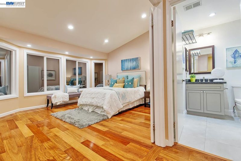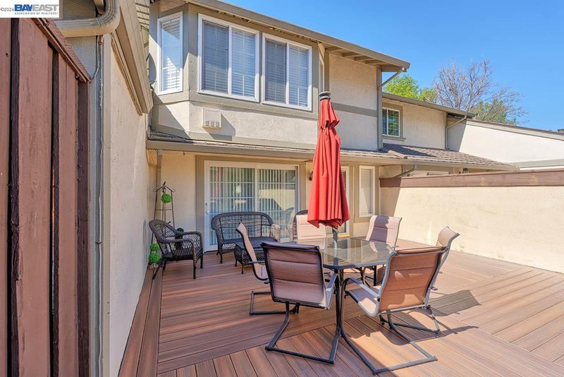 Beautiful and bright full of natural light townhome in the desirable Charter Square community in North Fremont with top-rated schools! This move-in ready home offers a bright and functional floor plan. The spacious kitchen features updated cabinetry, granite countertops, tile backsplash, built-in exhaust fan, and SS sink. The kitchen opens to the dining area with direct access to a private backyard. Upstairs, the expansive primary suite offers a vaulted ceiling, large sun-filled window, and walk-in closet. Two generously sized bedrooms are located nearby. The updated main bathroom features stylish tile work, vanity cabinets, a modern shower door, and updated light fixtures. Additional features include Brazilian teak hardwood flooring throughout, LED recessed lighting, double-pane windows, central heating &A/C. Enjoy a Trex composite deck in the front yard and paver stone patio in the backyard—perfect for relaxing or entertaining, detached two-car garage with driveway parking, along with additional resident and guest parking conveniently located in front of the home. Community amenities, including a large pool, jacuzzi, tennis court, basketball court, picnic area, and club house. Conveniently located near shopping, dining, top-rated American High School, (I-880, 84, 92), and major tech employers including Meta.