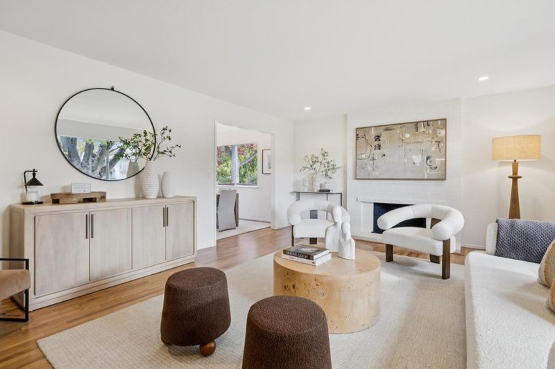 Set on a desirable corner lot along a quiet pocket street, this inviting split-level home offers space, comfort, and thoughtful updates throughout. Refinished hardwood floors extend across the main level, where the formal living room is anchored by a fireplace and a wide picture window, framed by the mature shade tree outside. The adjoining dining room enjoys leafy backyard views and a modern chandelier, creating a warm setting for everyday meals or gatherings. At the heart of the home, the renovated kitchen features quartz countertops, stainless-steel appliances, a tile backsplash, and a bright breakfast nook with sliding doors leading out to the deck and backyard. Downstairs, a guest bedroom, spacious secondary living area with a wet bar, renovated full bath, and yard access provides ideal flexibility for media use, guests, or multigenerational living. Upstairs, the serene primary suite offers dual closets, a covered balcony, and a refreshed ensuite with dual sinks and contemporary finishes. Two additional bedrooms with verdant backyard views share an updated hallway bath. The backyard is a private retreat with a raised deck, patio, and mature landscaping. All just minutes from Apple Park, Santa Claras Koreatown, Valley Fair, Santana Row, I-280, and SJC.