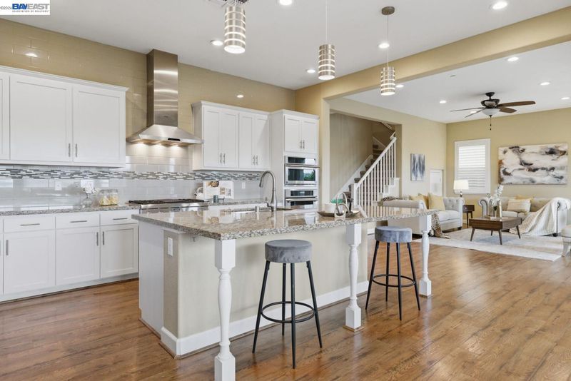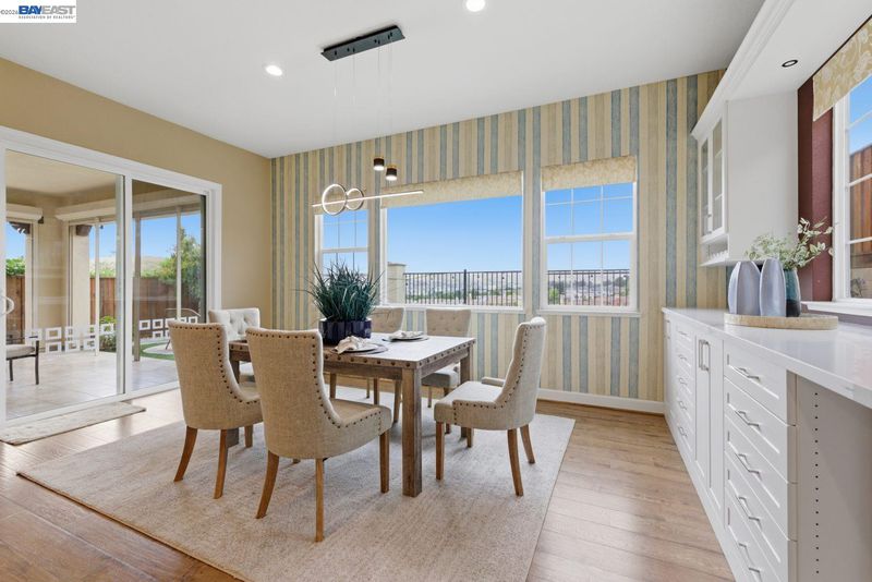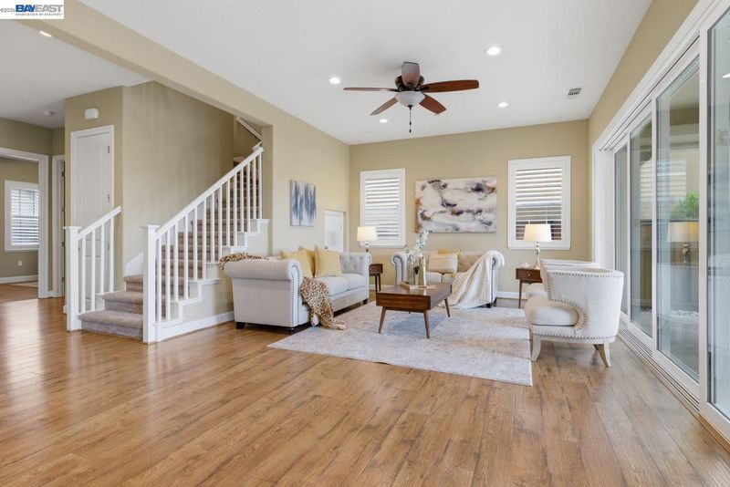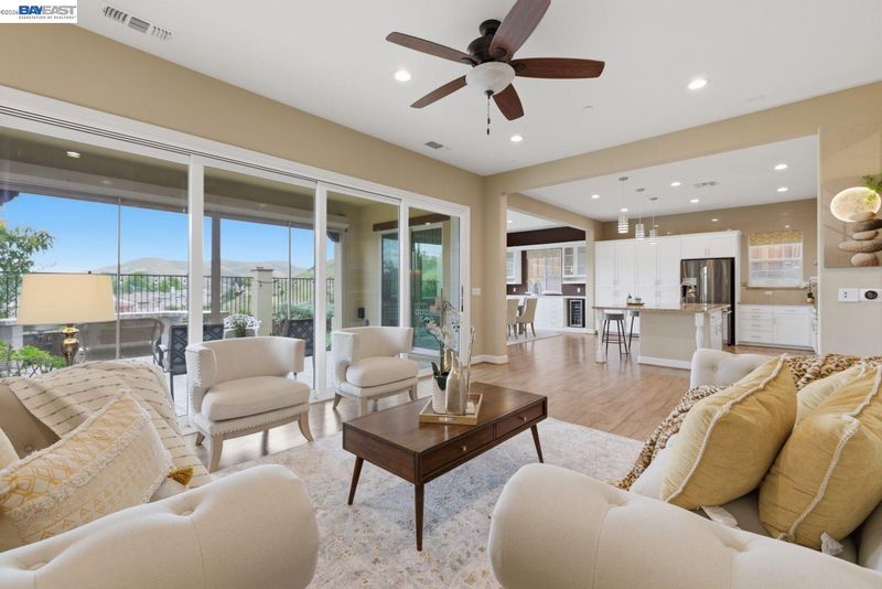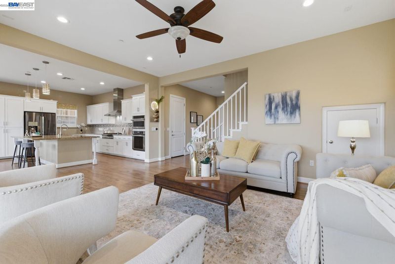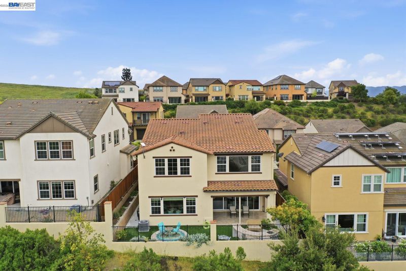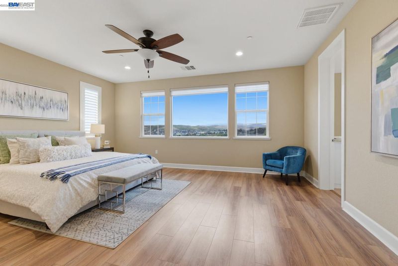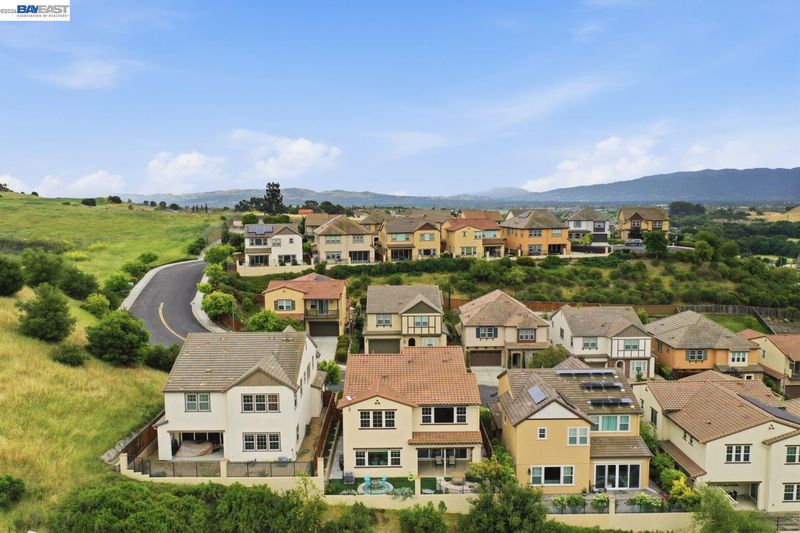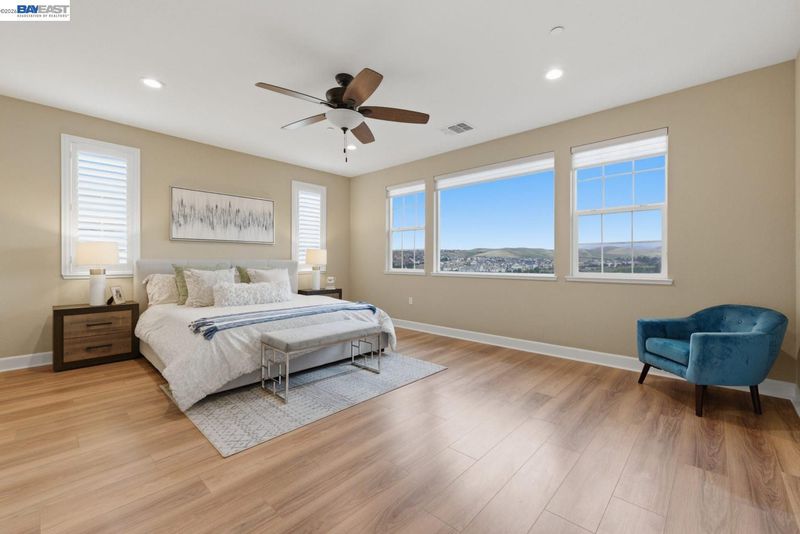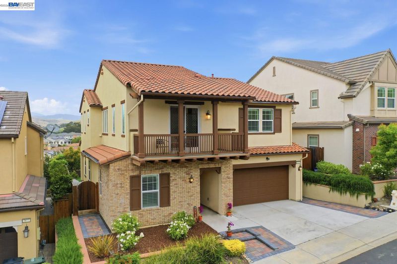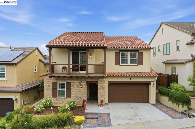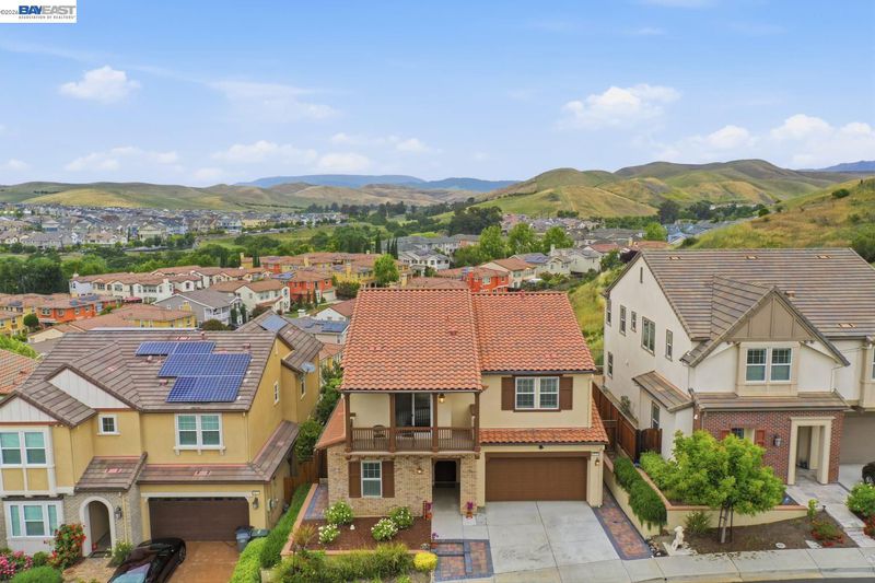 Stunning home on a premium cul-de-sac view lot with panoramic hill views from both levels. This exceptional 4-bedroom, 4-bath residence offers luxury, functionality, and an unbeatable Dublin location. Thoughtfully designed floor plan includes 1 bedroom and 1 full bath on the street level, ideal for guests, multigenerational living, or office use. Expansive open-concept living, dining, and family areas create an ideal setting for everyday living and entertaining. Gourmet kitchen features a large center island, upgraded white cabinetry, and premium Thermador gas appliances. Great room opens through a large multi-sliding glass door to the covered patio for seamless indoor-outdoor living. Upstairs, the spacious primary suite offers breathtaking views, spa-inspired bath, and generous walk-in closet. Secondary bedrooms are well-sized and conveniently located near additional bath. Professionally landscaped backyard features covered tile patio, lush greenery, and rolling hill views. Additional highlights include surround sound prewire and upscale finishes throughout. Conveniently located near top-rated schools, including John Green Elementary, Fallon Middle, and Emerald High, with easy access to BART, I-580/I-680, shopping, dining, and major employers. A rare opportunity to own a beautifully upgraded home with stunning views.