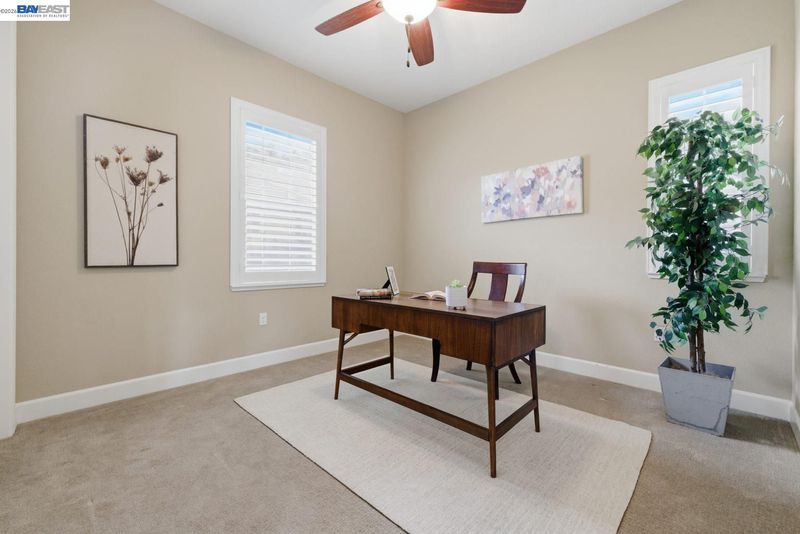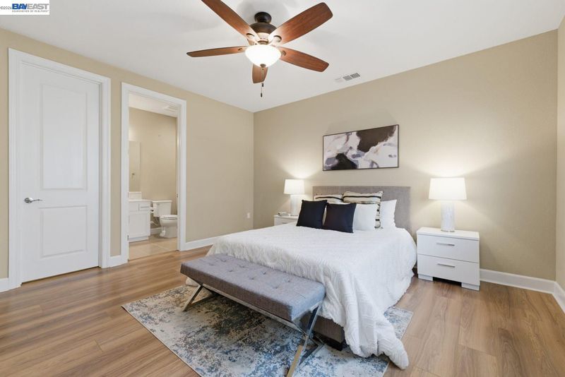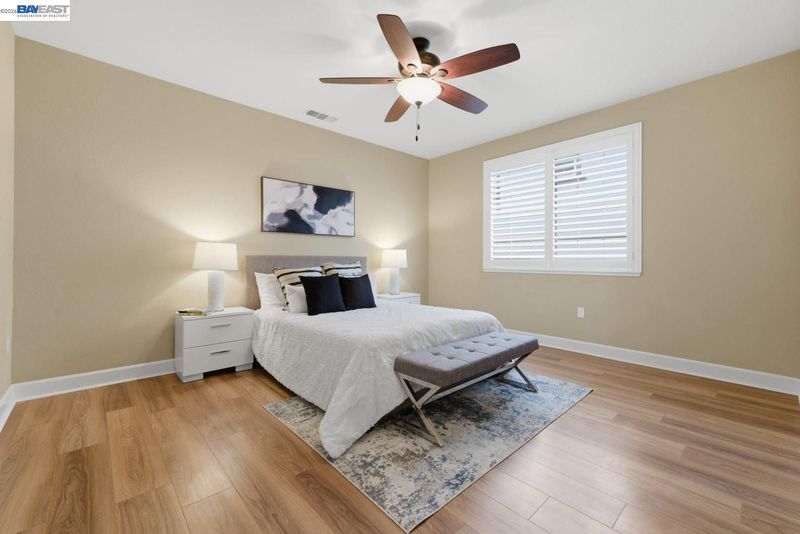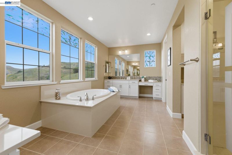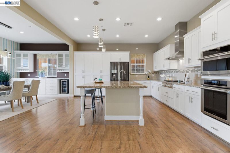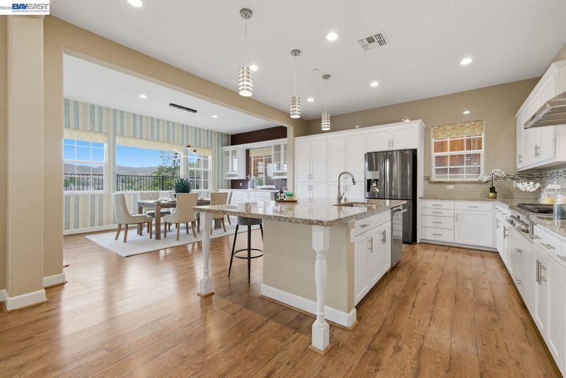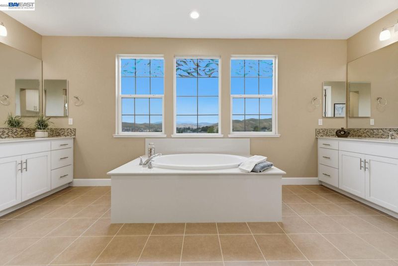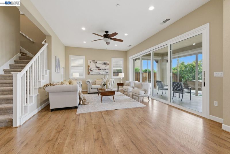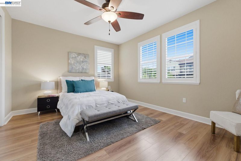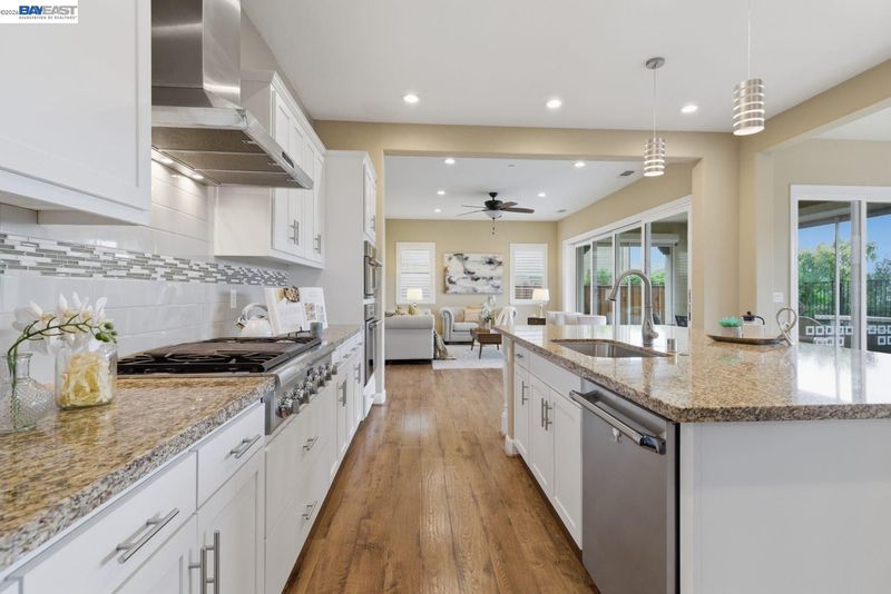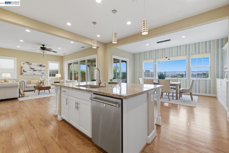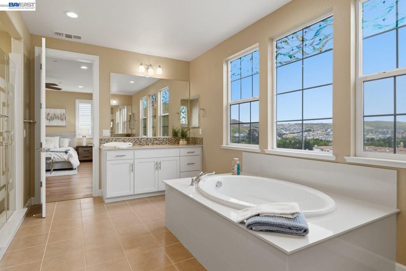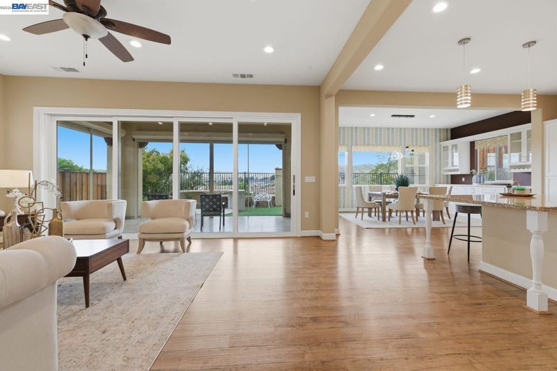 Stunning home on a premium cul-de-sac view lot with panoramic hill views from both levels. This exceptional 4-bedroom, 4-bath residence offers luxury, functionality, and an unbeatable Dublin location. Thoughtfully designed floor plan includes 1 bedroom and 1 full bath on the street level, ideal for guests, multigenerational living, or office use. Expansive open-concept living, dining, and family areas create an ideal setting for everyday living and entertaining. Gourmet kitchen features a large center island, upgraded white cabinetry, and premium Thermador gas appliances. Great room opens through a large multi-sliding glass door to the covered patio for seamless indoor-outdoor living. Upstairs, the spacious primary suite offers breathtaking views, spa-inspired bath, and generous walk-in closet. Secondary bedrooms are well-sized and conveniently located near additional bath. Professionally landscaped backyard features covered tile patio, lush greenery, and rolling hill views. Additional highlights include surround sound prewire and upscale finishes throughout. Conveniently located near top-rated schools, including John Green Elementary, Fallon Middle, and Emerald High, with easy access to BART, I-580/I-680, shopping, dining, and major employers. A rare opportunity to own a beautifully upgraded home with stunning views.
