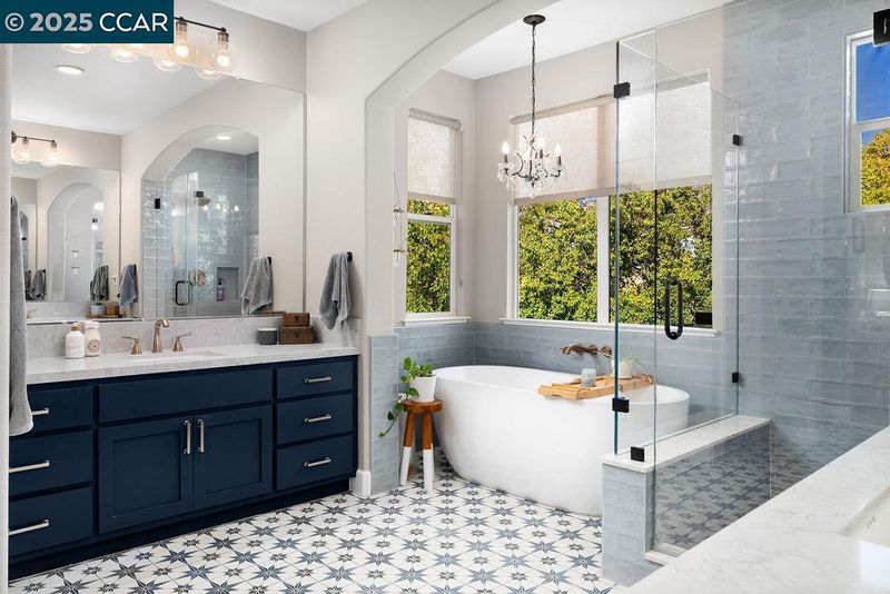 Welcome to 27 Campbell Place—ideally situated on a quiet cul-de-sac, this beautifully maintained 5-bed, 4-bath home includes a desirable main-level bedroom/bath. The interior features soaring ceilings, engineered wood floors, and abundant light. The updated chef’s kitchen and family room seamlessly connect to the backyard, perfect for indoor-outdoor entertaining. Functional spaces abound: a 3-car tandem garage with storage, a dedicated media room, and an upstairs tech center/loft ideal for a home office. The elegant primary suite is a true retreat, boasting a fully remodeled bath with an oversized walk-in shower, luxurious soaking tub overlooking the yard, and a generous walk-in closet. Outside, a private resort-style oasis awaits! Enjoy amazing sunset views, an extensive outdoor kitchen, and a sparkling pool and spa framed by the beautiful surrounding hills. Located in a highly desirable Danville neighborhood near top schools and shopping, this home blends comfort, style, and California living at its finest.