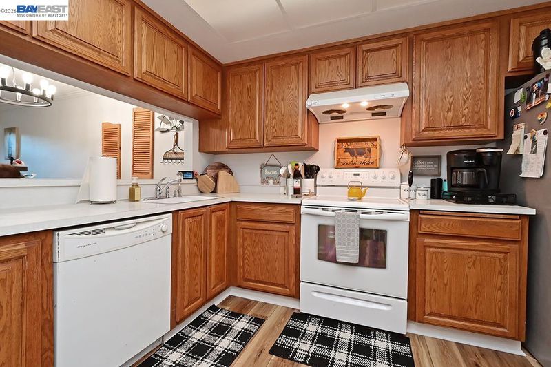 - Dishwasher, Electric Range, Refrigerator, Breakfast Bar, Counter - Solid Surface, Electric Range/Cooktop, Disposal
