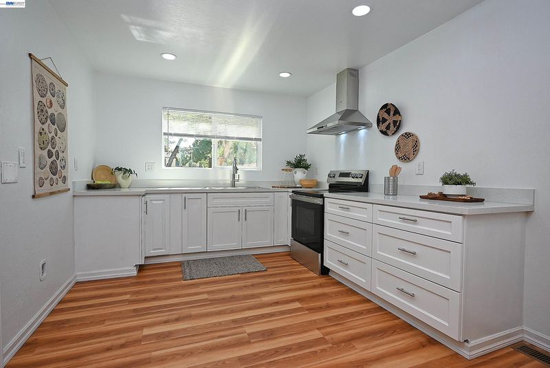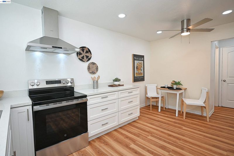 - Electric Range, 220 Volt Outlet, Counter - Solid Surface, Eat-in Kitchen, Electric Range/Cooktop, Pantry, Updated Kitchen