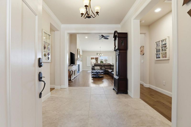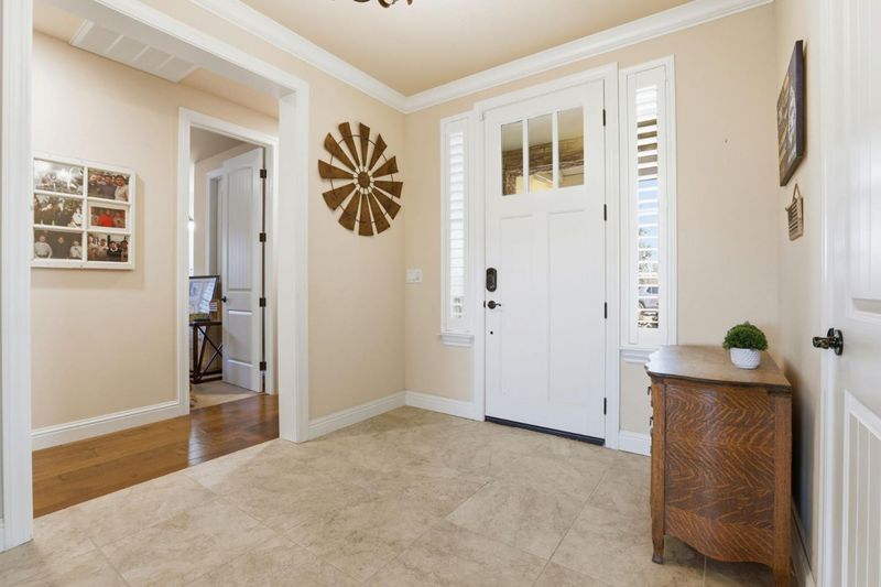 Welcome to a rare blend of luxury and outdoor living in this beautifully upgraded single-story 4 Bedroom 3 bath home in a gated golf course community, offering refined, resort-style living. This elegant home features a gourmet kitchen with granite countertops and Bosch stainless steel appliances designed for both everyday living and entertaining. This well curated floor plan showcases hardwood and tile floors along with heated floors in all the bathrooms. The Spa-inspired primary bathroom includes a jetted tub, waterfall shower, and walk in closet for a luxurious, retreat-like experience. Plantation shutters and owned solar enhance comfort, style, and efficiency, while a spacious over sized 3-car garage provides ample space for vehicles, storage, and hobbies. Step outside to a private backyard sanctuary designed for relaxation and entertaining, featuring a sparkling saltwater pool, freestanding hot tub, bocce ball court, 18 x 14 pavilion gazebo, and a garden framed by mature landscaping for privacy and tranquility. Enjoy this thoughtfully designed luxury home where every detail invites you to relax and entertain in style.
