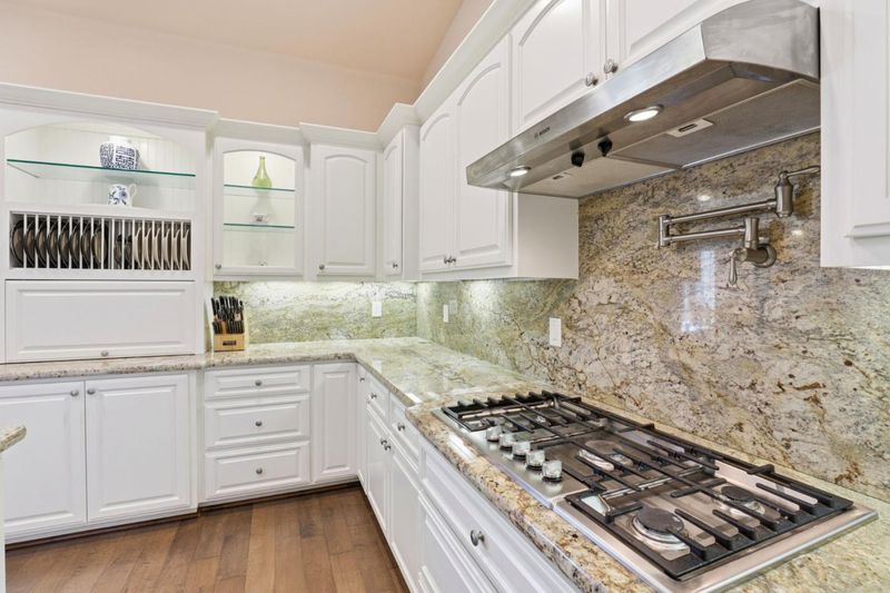 - Cooktop - Gas, Countertop - Granite, Dishwasher, Exhaust Fan, Garbage Disposal, Island with Sink, Microwave, Oven - Double, Oven - Gas, Pantry, Skylight