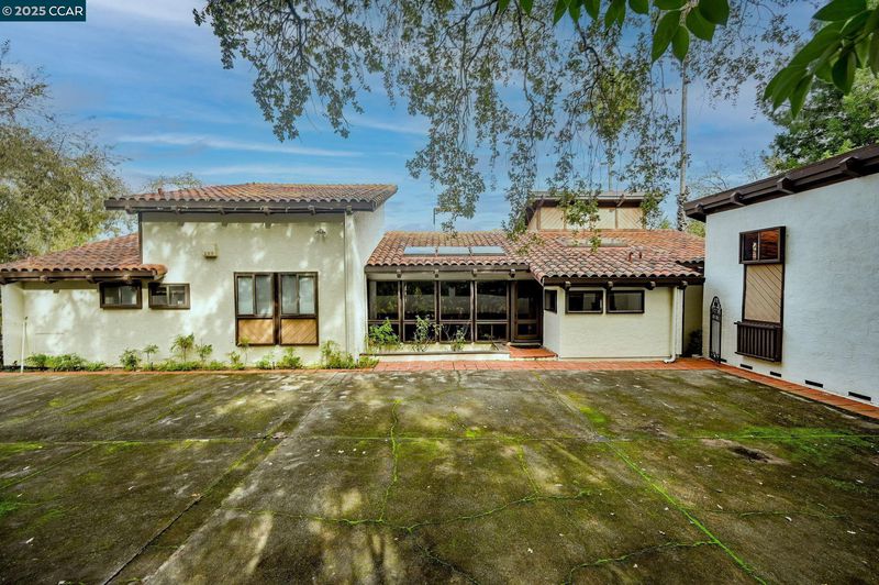 A distinctive architectural gem set on a private road just minutes from downtown Lafayette, this elegant home has a unique, stylish design. Beautifully preserved original details, exposed beams, warm wood accents, dramatic soaring ceilings, and an open floor plan create a sense of space and light throughout. The home exudes authentic charm, with solid construction and generous spaces. 4093 +/- sq ft with five bedrooms and three full baths, two living rooms, both with fireplaces and one with a remarkable stained-glass window, a library, and an office. This home has ideal spaces for relaxing or entertaining. Walls of glass highlight serene views and create seamless indoor-outdoor flow, leading to a spacious deck perfect for gatherings. An expansive sport court offers endless possibilities for recreation, while a three-car garage with an upstairs bonus room and abundant storage adds convenience. Surrounded by nature on a .53-acre lot, with space for a potential ADU, this tranquil sanctuary is an entertainer’s dream—combining privacy, character, and style. Conveniently close to BART and the beautiful reservoir.