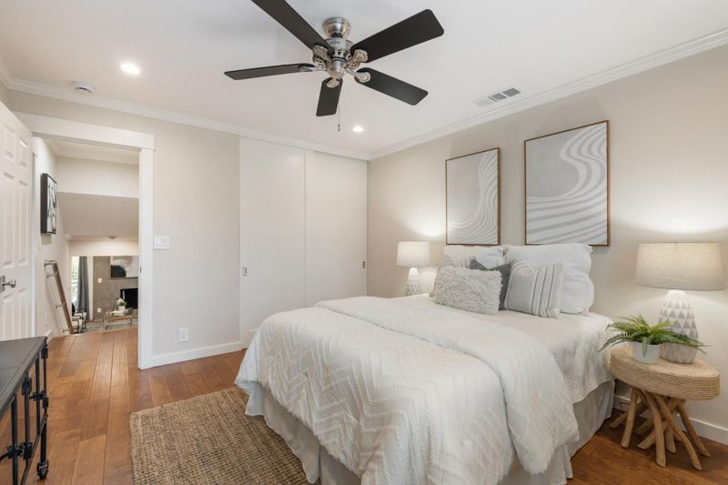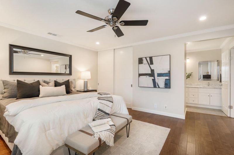 Totally updated in Almaden Valley. This turnkey home features vaulted ceilings, hardwood floors, dual-pane windows, plantation shutters, and a modern fireplace with designer tile. The upen kitchen includes shaker cabinetry, quartz counters, stainless appliances, and subway tile backsplash. Both bathrooms are fully renovated with frameless glass showers, custom tiles, and heated floors. Additional upgrades include a new electrical panel, tankless water heater, water-softening system, dimmable/adjustable LED lighting, soft-close closet doors, central forced air AC & heat, and an LG WashTower. The new TREX deck offers a perfect outdoor retreat. Detached 2 car garage with epoxy floors. Community pool and spa. A truly move-in-ready home with premium finishes and thoughtful updates throughout. Prime central location close to everything. Just minutes to Downtown Willow Glen with its boutique shops, cafes, and award-winning restaurants. Quick access to Downtown San Jose, SAP Center, Diridon Station, and the future Google Village. Nearby shopping includes Whole Foods, Costco, Target, Westfield Oakridge, and multiple neighborhood conveniences. Easy commute routes via Hwy 87, 85, 280, and Light Rail. Enjoy the best of urban amenities while living in a peaceful, well-maintained community.