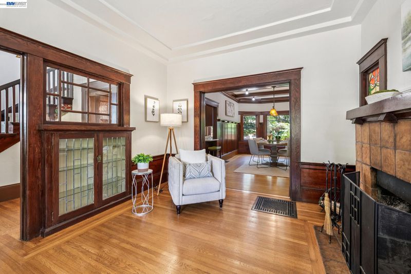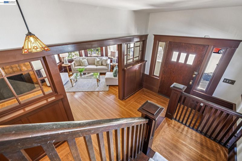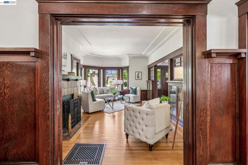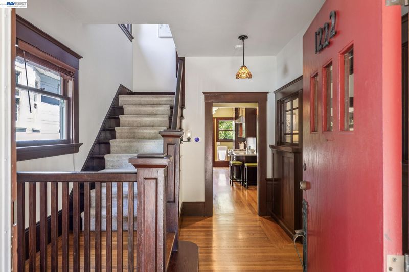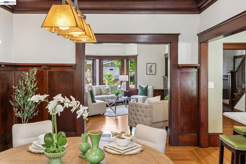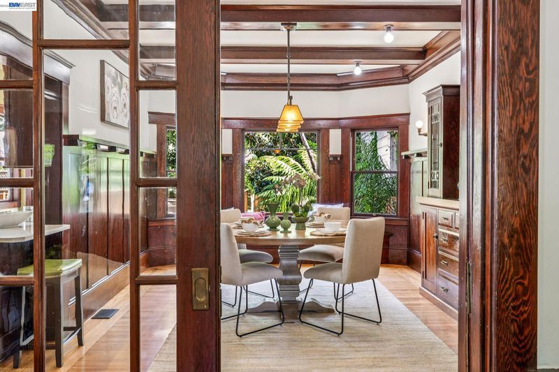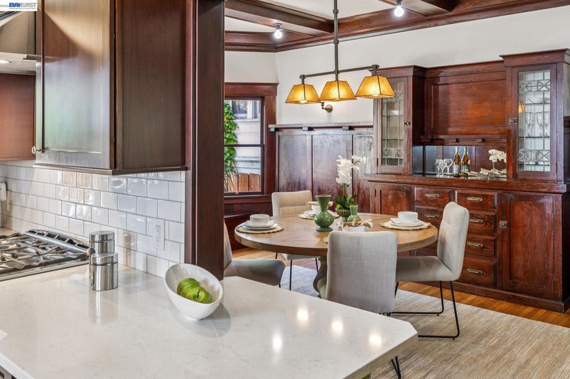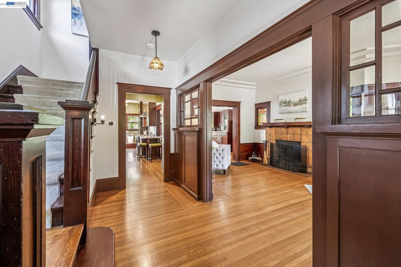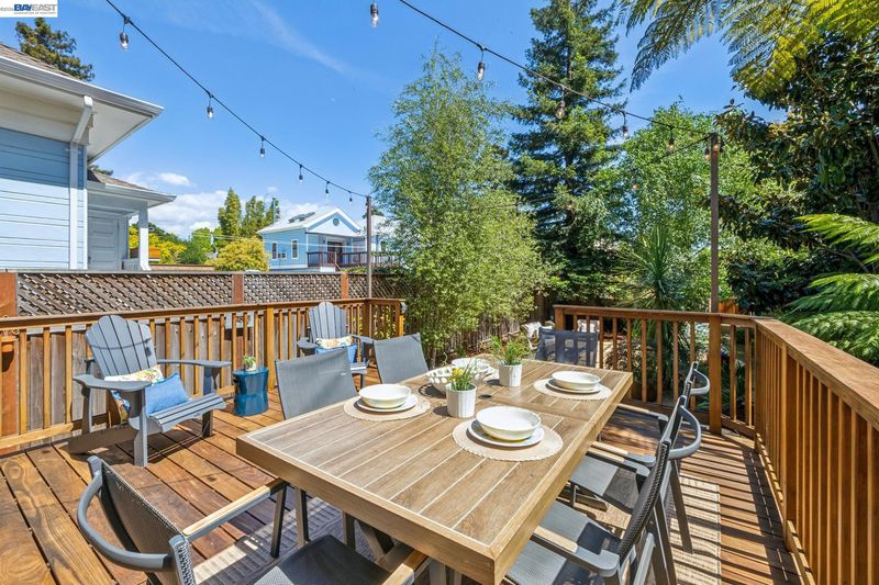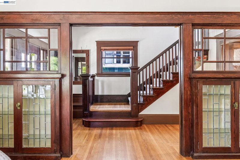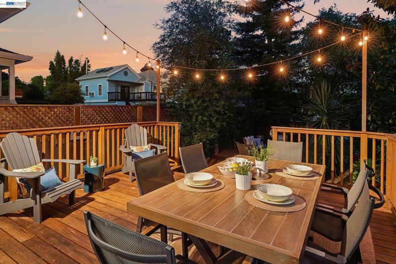 Well loved for over 25 years, this iconic Alameda home with an oasis-like backyard is in search of its new owner. The perfect blend of traditional style and modern touches,the home shines with beautiful architecture of an era gone by, deep wood wainscotting, built-in cabinetry boasting leaded glass, pocket door with glass inserts, and more. The floor plan flows easily from the foyer to formal living and dining rooms, into a tastefully renovated kitchen, out to a backyard that will be coveted by all who visit. When you step out onto your two-tiered Brazilian Ironwood deck, you will feel as if you’ve been transported to a tropical resort surrounded by mature gardens, perfect for entertaining or enjoying a quiet evening at home. The personal living spaces are upstairs where you'll find the primary suite with updated bath, 2 additional bedrooms, hallway bath, and classic built-in linen cabinetry. As if that weren’t enough, you’ll find an extra 870 square feet in the finished basement including, bonus room, laundry room and workshop.Storage is often an issue on older homes, not this one! From the expansive kitchen cabinetry, floor-to-ceiling linen closet, closet space, workshop shelving, attic space, to the exterior 70 sq ft shed, your belongings will find the perfect space. The flag lot provides a lengthy driveway for off-street parking and easy access for heading off on a ride around the island on your favorite mode of transport, easily stored in the exterior shed. Located on one of Alameda’s quiet streets, you’re close to award-winning schools, parks, beaches, shopping, including the classic Encinal Hardware and Pharmacy store at the end of the block, Park Street and South Shore with their many shops and restaurants, public transit, the Oakland airport, and so much more. This is the one you’ve been waiting for!
