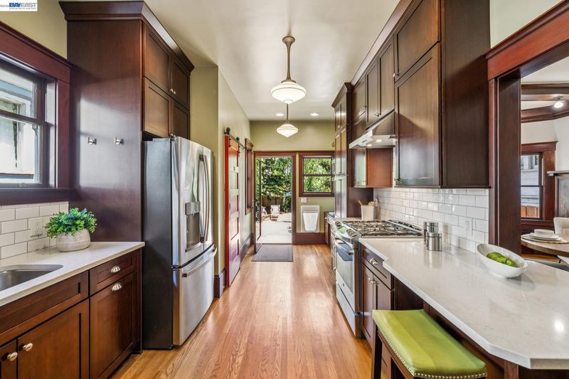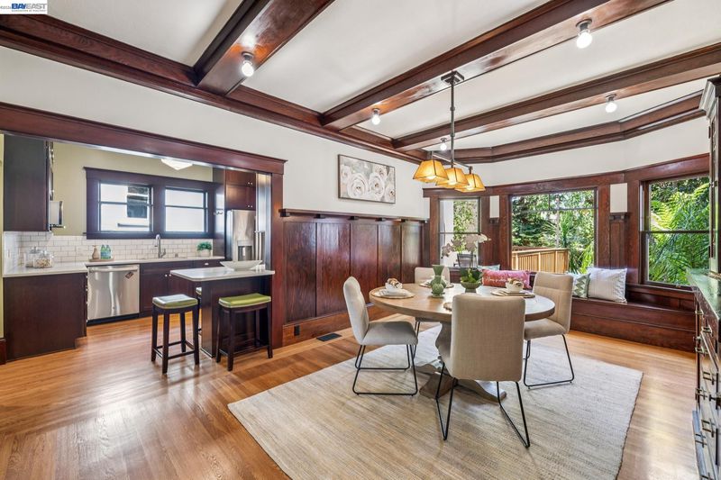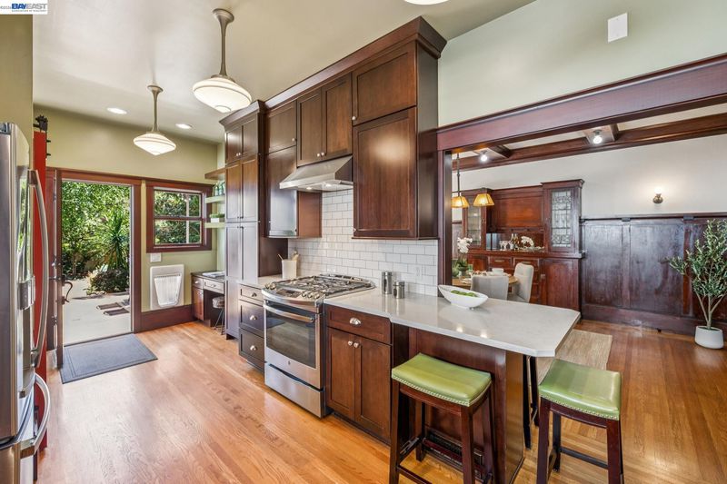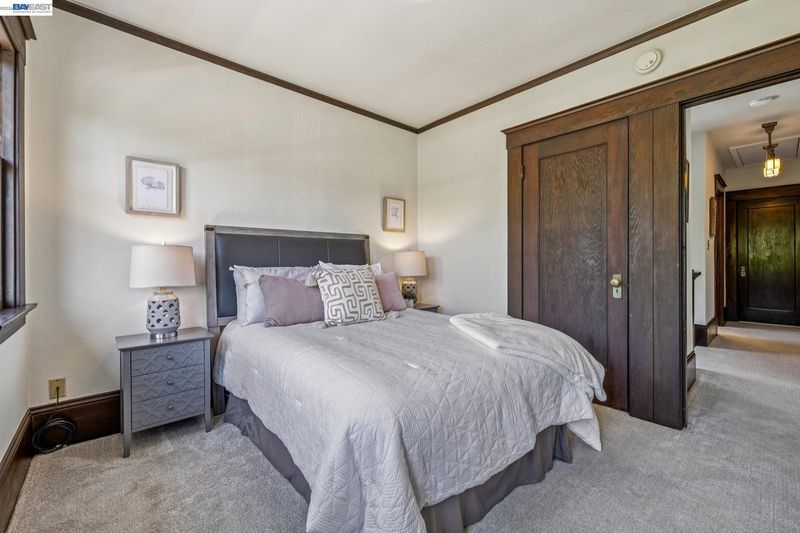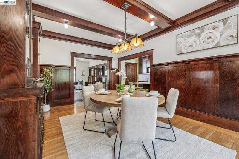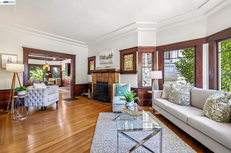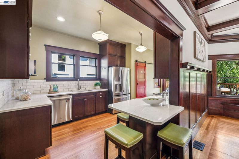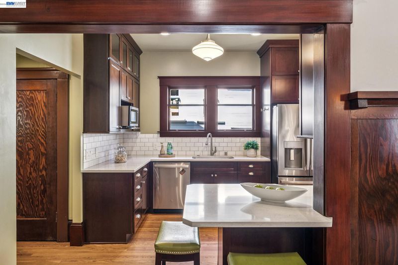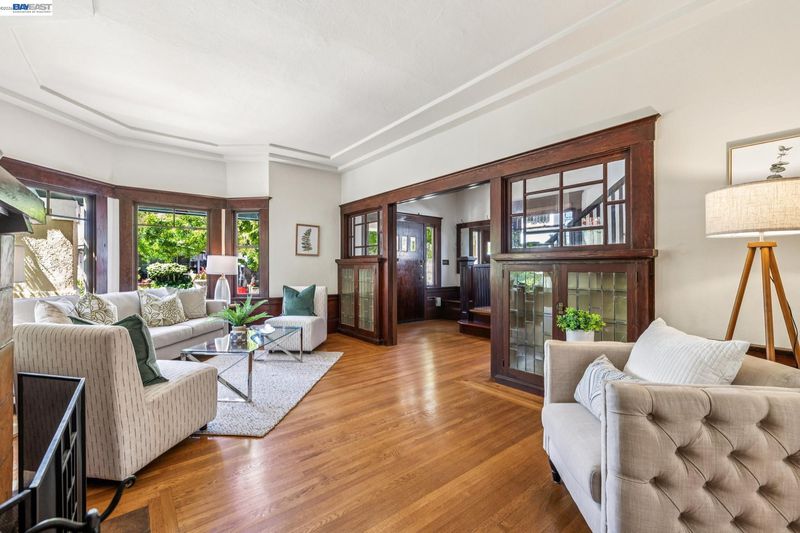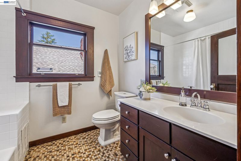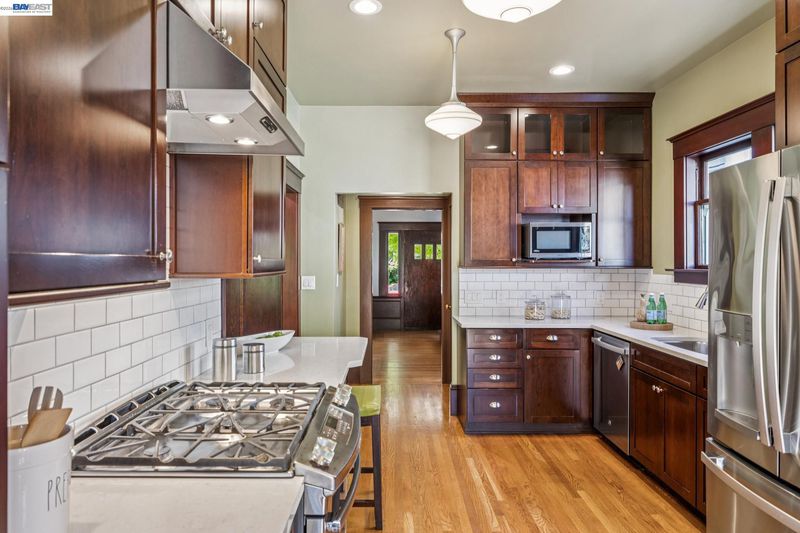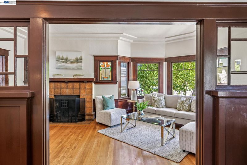 Well loved for over 25 years, this iconic Alameda home with an oasis-like backyard is in search of its new owner. The perfect blend of traditional style and modern touches,the home shines with beautiful architecture of an era gone by, deep wood wainscotting, built-in cabinetry boasting leaded glass, pocket door with glass inserts, and more. The floor plan flows easily from the foyer to formal living and dining rooms, into a tastefully renovated kitchen, out to a backyard that will be coveted by all who visit. When you step out onto your two-tiered Brazilian Ironwood deck, you will feel as if you’ve been transported to a tropical resort surrounded by mature gardens, perfect for entertaining or enjoying a quiet evening at home. The personal living spaces are upstairs where you'll find the primary suite with updated bath, 2 additional bedrooms, hallway bath, and classic built-in linen cabinetry. As if that weren’t enough, you’ll find an extra 870 square feet in the finished basement including, bonus room, laundry room and workshop.Storage is often an issue on older homes, not this one! From the expansive kitchen cabinetry, floor-to-ceiling linen closet, closet space, workshop shelving, attic space, to the exterior 70 sq ft shed, your belongings will find the perfect space. The flag lot provides a lengthy driveway for off-street parking and easy access for heading off on a ride around the island on your favorite mode of transport, easily stored in the exterior shed. Located on one of Alameda’s quiet streets, you’re close to award-winning schools, parks, beaches, shopping, including the classic Encinal Hardware and Pharmacy store at the end of the block, Park Street and South Shore with their many shops and restaurants, public transit, the Oakland airport, and so much more. This is the one you’ve been waiting for!