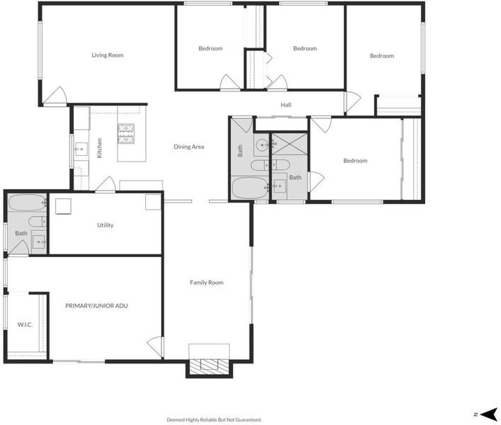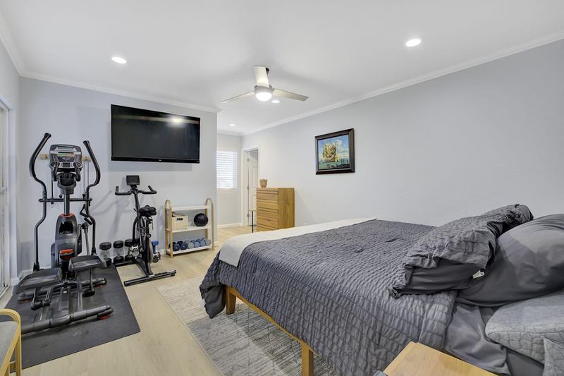 This single-level home in Gilroy features a functional, updated layout with a rare 5-bedroom, 3-bathroom configuration, ideal for today's living needs. Two bedrooms are designed with their own private bathrooms, ideal for guests, extended family, or separate living arrangements. The kitchen is centrally located and includes modern appliances, an eat-in area, and a dining area that connects easily to the main living areas. Adjacent to the kitchen, the family room offers a fireplace and a comfortable setting for daily use. Recent improvements can be found throughout the home, including updated bathrooms with newer fixtures, tile, flooring, and soaking tubs. Comfort features include central air conditioning, forced-air heating, ceiling insulation, and double-pane windows. A permitted junior ADU, thoughtfully converted from the original garage, provides added flexibility with its own wall-mounted heater and A/C unit. This private space is suited for extended stays, guests, a home office, or possible rental use. The backyard has a covered patio, spa, a two-level barn-style Tuff Shed, a side shed, and mature fruit trees. The home is located within the Christopher High School boundary and close to public transportation, groceries, restaurants, parks, and major freeway access.