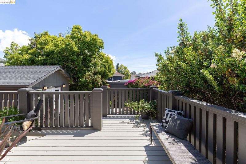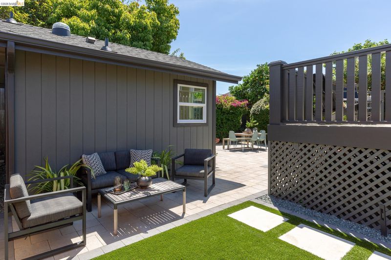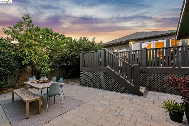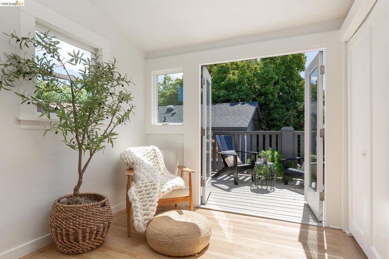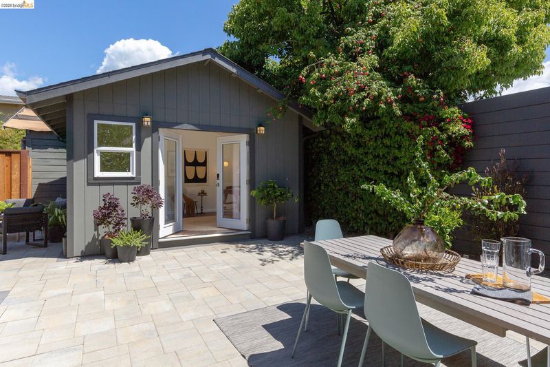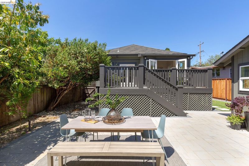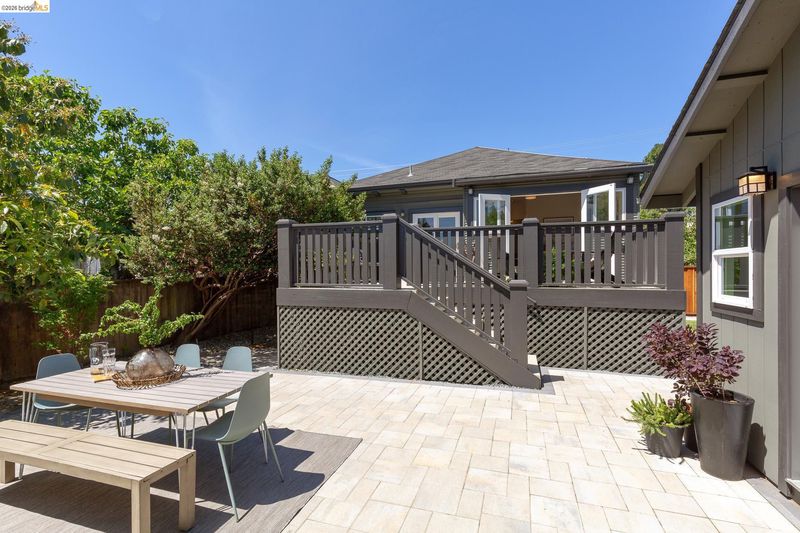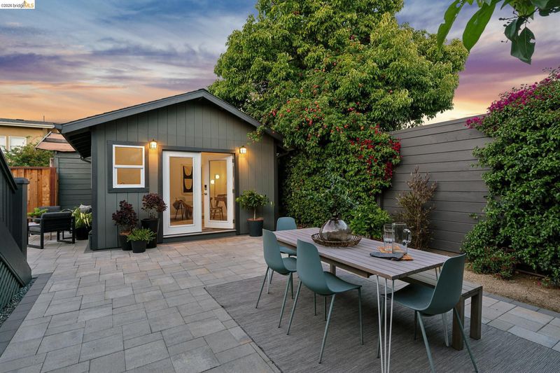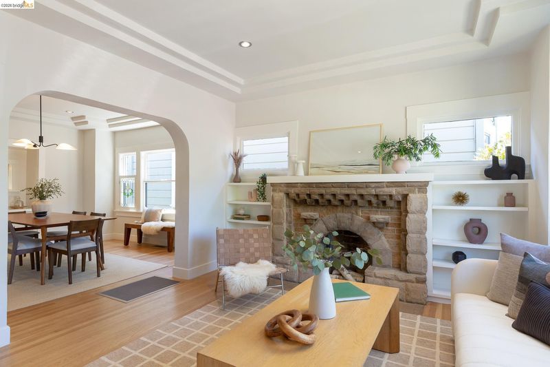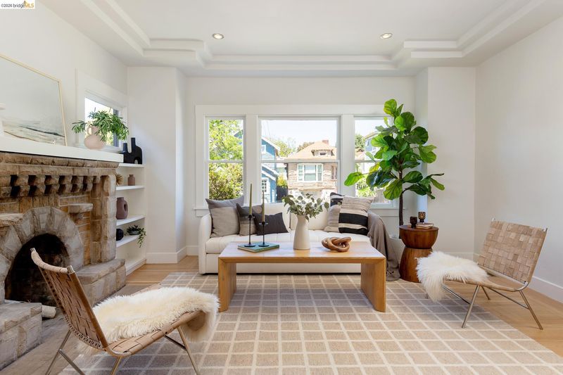 Step into the gracious foyer and you feel it immediately — this one is something special. Charming, light-filled, and classically proportioned, this is a home that has been loved thoughtfully and wears it well. The chef's kitchen is the heart of it all, generous and designed for the way people actually live. An elegant stone fireplace anchors the living space with quiet, enduring warmth. Beautiful windows fill every room with natural light, rich hardwood floors run throughout, and all-level living makes daily life genuinely easy. The primary bedroom is its own world — an ensuite bath and French doors opening onto an expansive rear deck overlooking the lawn and patio below make it a place you'll never want to leave. A second bedroom and an elegant bath — gorgeous tile floors and a proper clawfoot tub — round it out perfectly. A fantastic rear unit — ideal as a private office, studio, or guest suite with its own bath — rests amongst the back patio sharply designed with Belgard pavers, custom landscaping and lighting, offering the kind of flexibility and outdoor living that's hard to find. And then there's the basement — an impressive, oversized space wide open with possibility. For anyone with a vision to build it out, the canvas doesn't get much better than this. And the location? A commuter's dream. Just three blocks to BART and minutes to Highway 24, with the very best of Rockridge right at your doorstep: an abundance of beloved restaurants, independent shops, and the award-winning Market Hall. A private driveway means all your parking needs are covered and owned solar rounds out a home that is as smart as it is beautiful. This one will charm you for sure!
