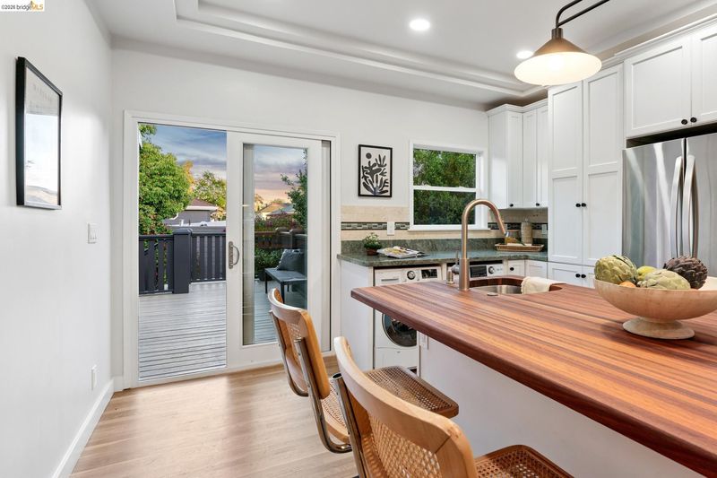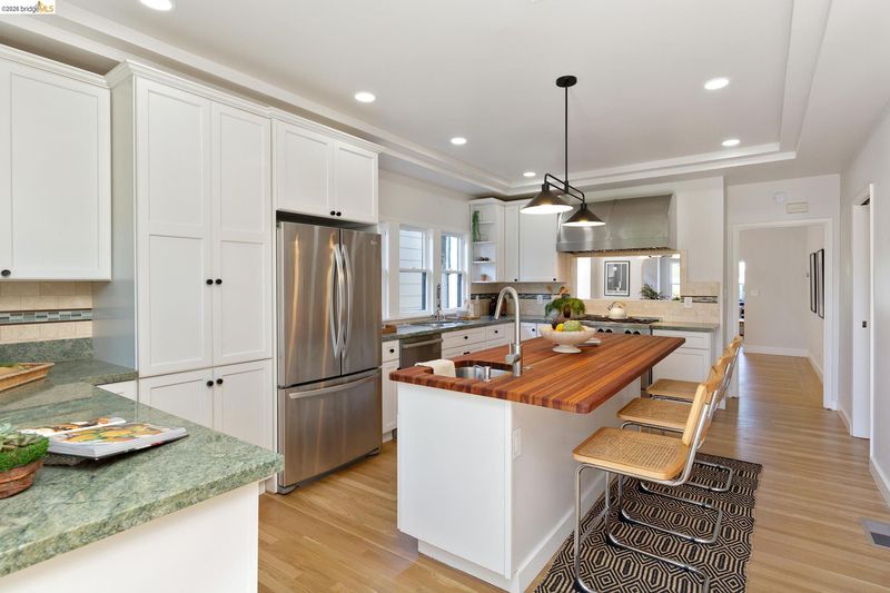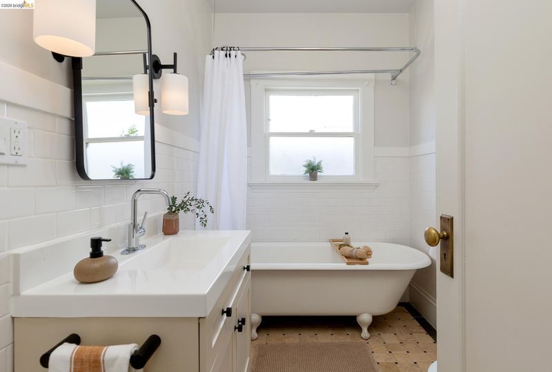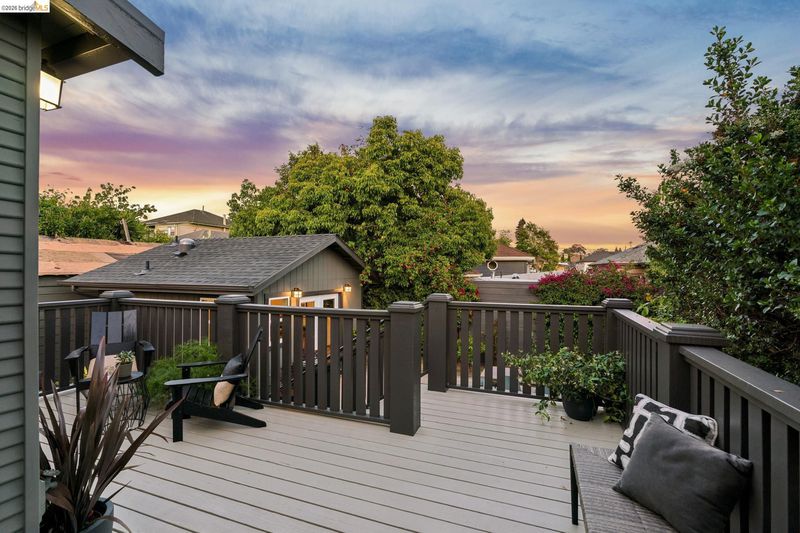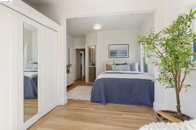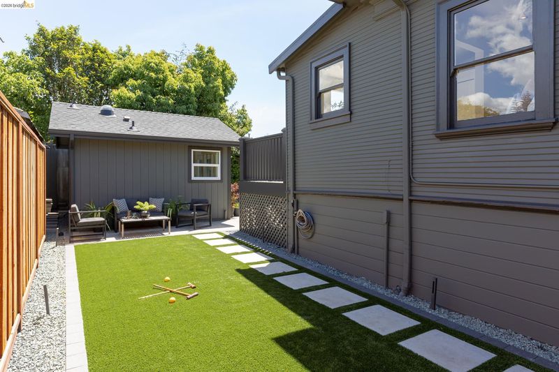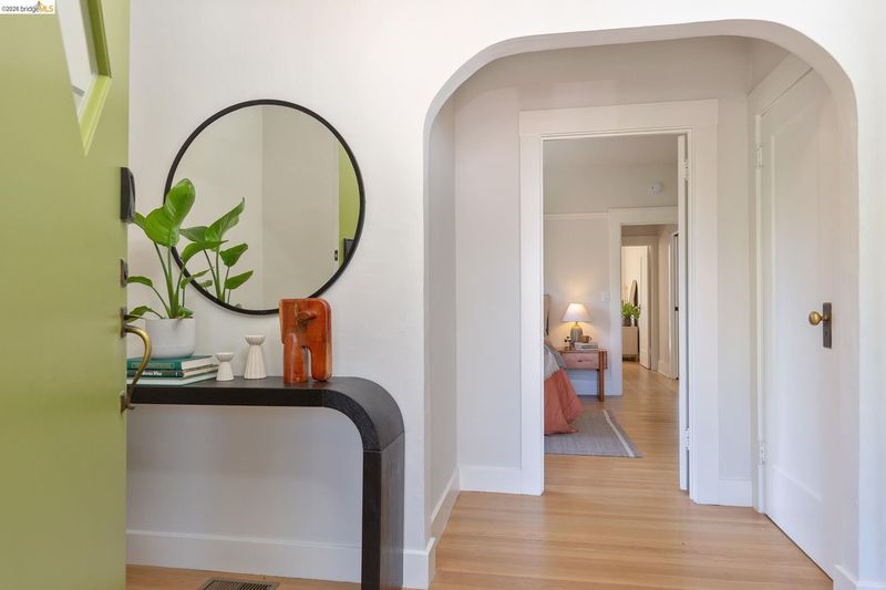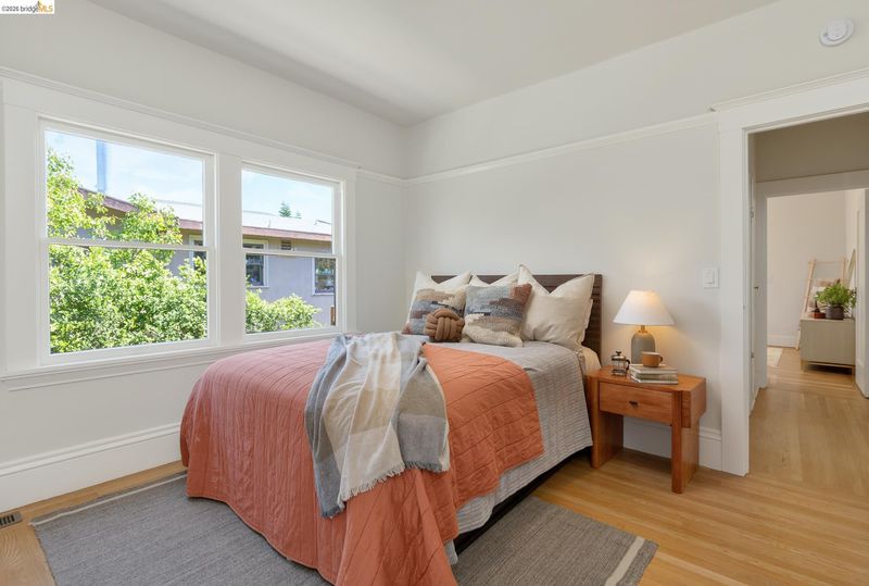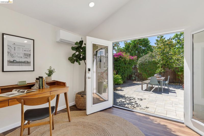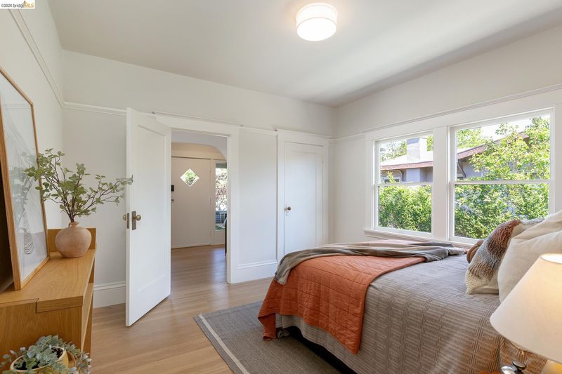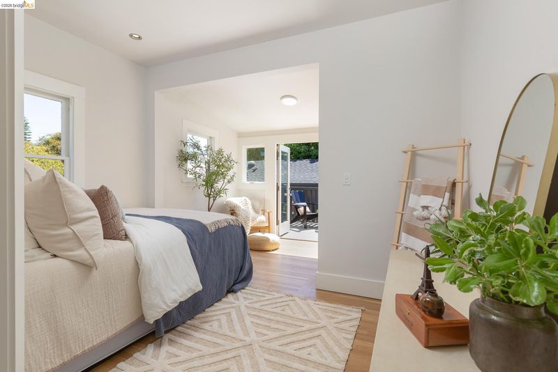 Step into the gracious foyer and you feel it immediately — this one is something special. Charming, light-filled, and classically proportioned, this is a home that has been loved thoughtfully and wears it well. The chef's kitchen is the heart of it all, generous and designed for the way people actually live. An elegant stone fireplace anchors the living space with quiet, enduring warmth. Beautiful windows fill every room with natural light, rich hardwood floors run throughout, and all-level living makes daily life genuinely easy. The primary bedroom is its own world — an ensuite bath and French doors opening onto an expansive rear deck overlooking the lawn and patio below make it a place you'll never want to leave. A second bedroom and an elegant bath — gorgeous tile floors and a proper clawfoot tub — round it out perfectly. A fantastic rear unit — ideal as a private office, studio, or guest suite with its own bath — rests amongst the back patio sharply designed with Belgard pavers, custom landscaping and lighting, offering the kind of flexibility and outdoor living that's hard to find. And then there's the basement — an impressive, oversized space wide open with possibility. For anyone with a vision to build it out, the canvas doesn't get much better than this. And the location? A commuter's dream. Just three blocks to BART and minutes to Highway 24, with the very best of Rockridge right at your doorstep: an abundance of beloved restaurants, independent shops, and the award-winning Market Hall. A private driveway means all your parking needs are covered and owned solar rounds out a home that is as smart as it is beautiful. This one will charm you for sure!