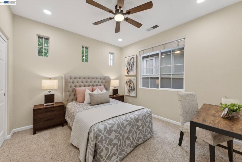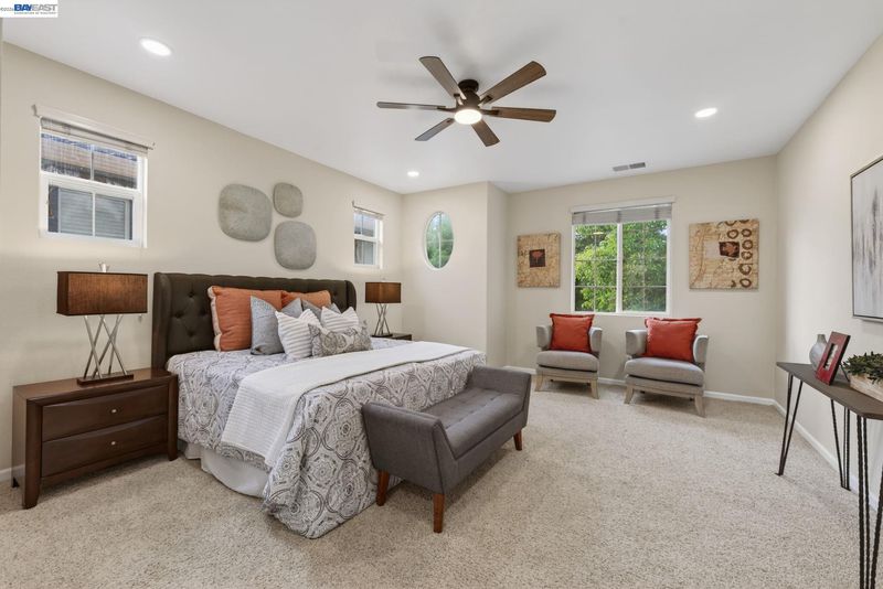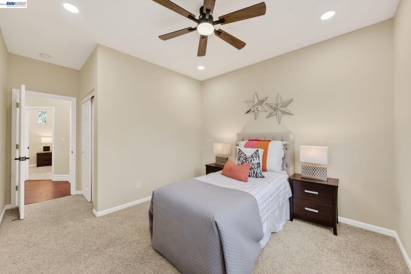 Located in the highly sought-after Dublin Ranch community, this beautifully updated 4-bedroom, 3-bath residence is set on an amazing lot and offers a thoughtfully designed floor plan with a full bedroom and bathroom on the main level—ideal for guests or multi-generational living. Freshly painted interiors and upgraded recessed lighting with ambient settings enhance the home’s bright and inviting ambiance, while soaring ceilings in the living and family rooms create an open, airy feel. Elegant wainscoting adds a refined touch of character, complementing the home’s modern yet timeless appeal. The spacious kitchen is designed for both everyday living and entertaining, featuring an island, stainless steel appliances, and seamless flow into the main living areas. Upstairs, you’ll find well-proportioned bedrooms along with a generous primary suite designed for comfort and relaxation. The backyard offers a peaceful outdoor retreat with mature fruit trees and blooming flowers—perfect for entertaining or unwinding in a private setting. Ideally located near shopping, dining, and with convenient access to I-580/I-680 and BART, this home also enjoys close proximity to scenic walking trails and Emerald Glen Park, offering open green space and a variety of recreational amenities. An exceptional opportunity to own a well-appointed home in one of Dublin’s most desirable communities.