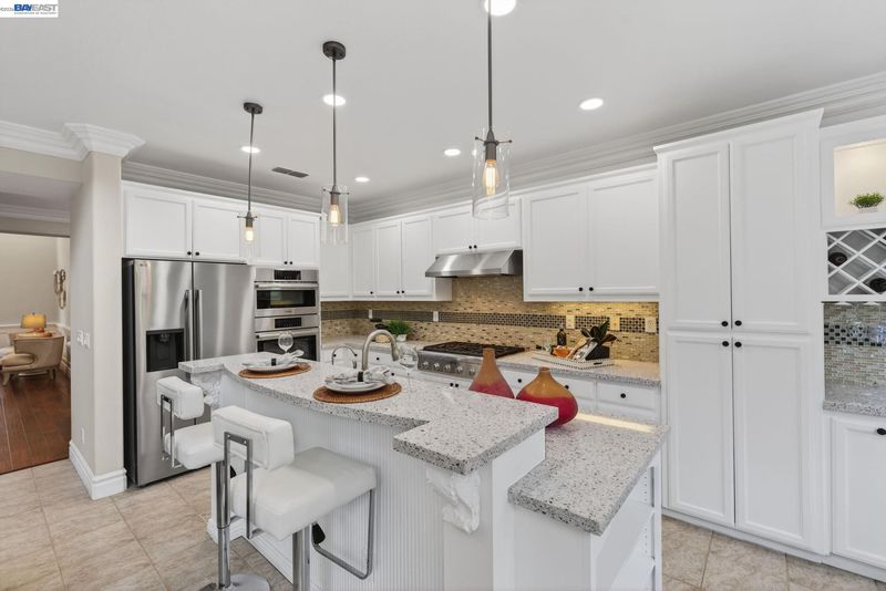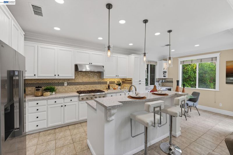 - Dishwasher, Gas Range, Microwave, Oven, Refrigerator, Gas Water Heater, Breakfast Bar, Breakfast Nook, Stone Counters, Eat-in Kitchen, Gas Range/Cooktop, Oven Built-in