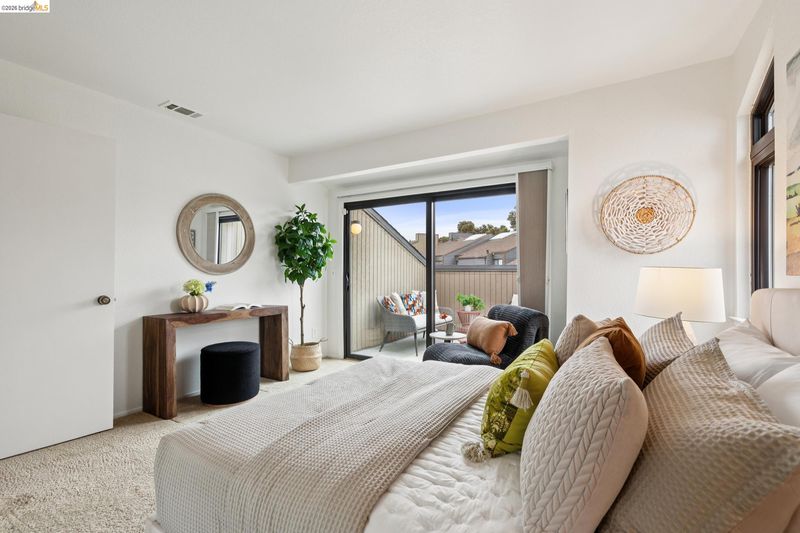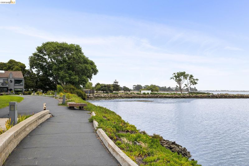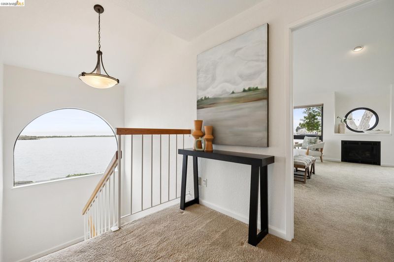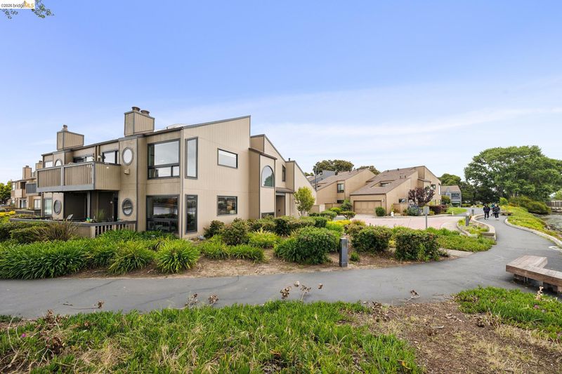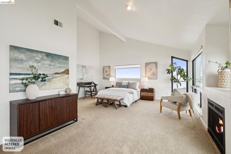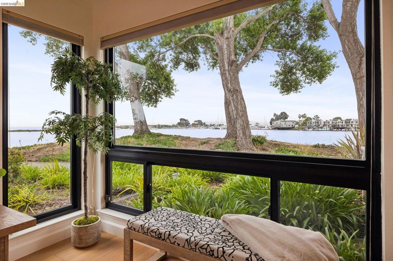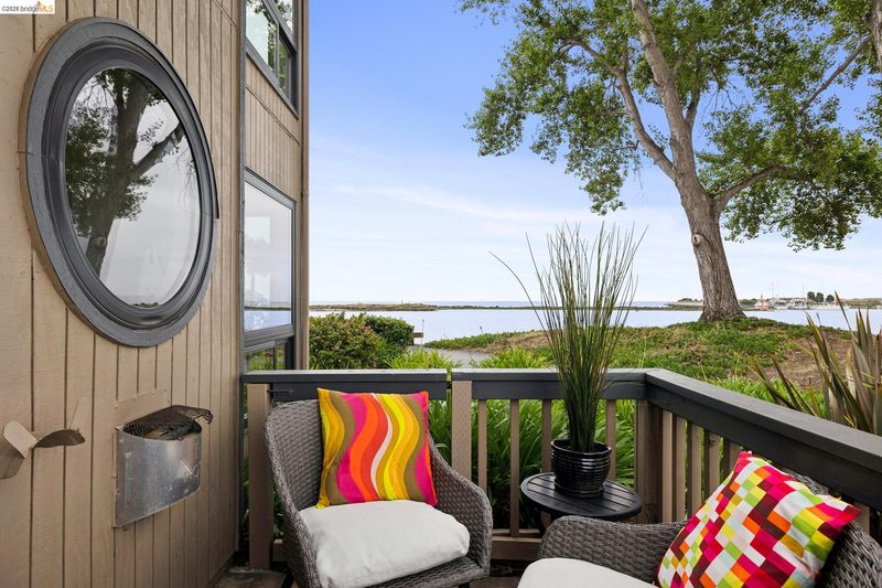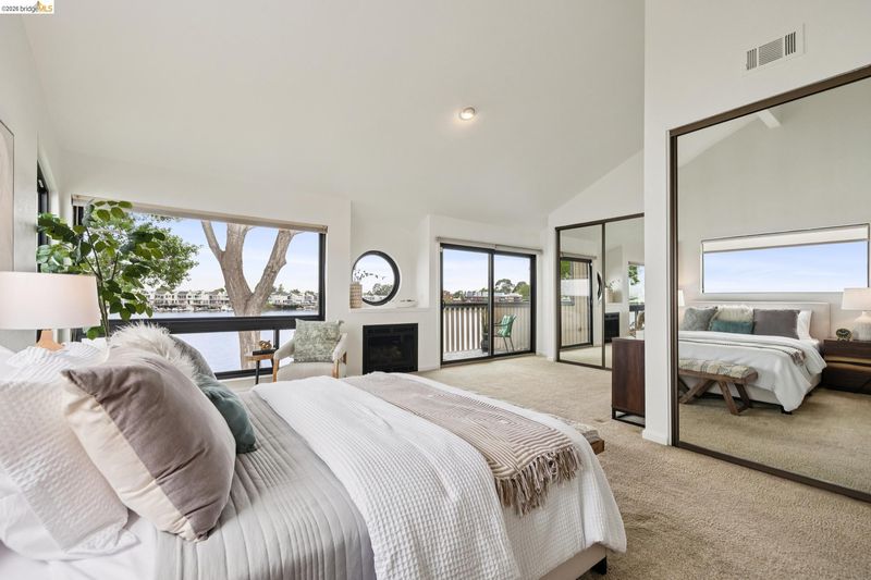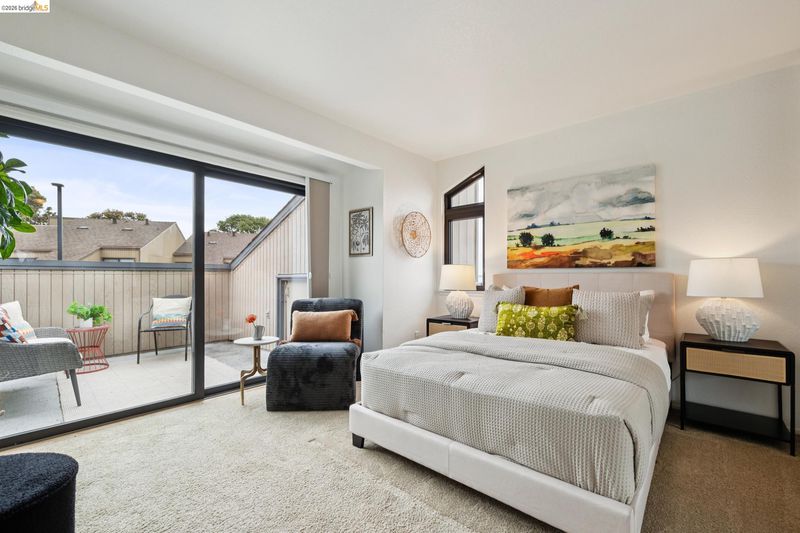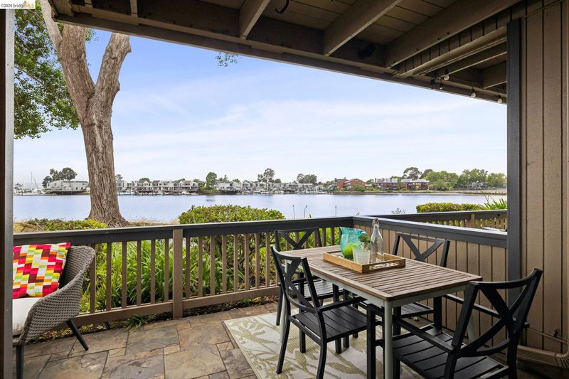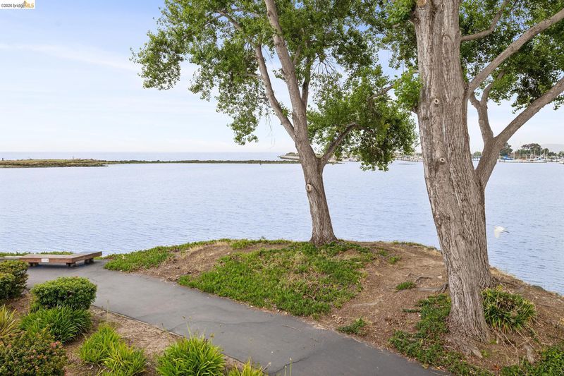 Rare 2-story condo that lives like a single-family home with sweeping views of the marina, SF Bay & Crown Memorial Beach. This light-filled residence offers a seamless floorplan designed to maximize its stunning setting. Features include newer luxury laminate flooring, updated kitchen with stone counters, solid maple cabinetry, stainless appliances, pull-out drawers & under-cabinet lighting. Effortless flow connects dining, side patio, garage & den. Two updated fireplaces add warmth & modern style. Upstairs, the primary suite is a retreat with vaulted ceilings, private view patio, plush carpet & spa-like bath with skylight, radiant heat floors, double sinks & soaking tub designed to retain heat. The updated hall bath serves additional bedrooms. One bedroom opens to a second patio with deep storage. Attached 2-car garage with laundry hookups, built-ins & loft storage. HOA covers exterior maintenance. Close to Webster St shops, restaurants, ferry & freeway access.