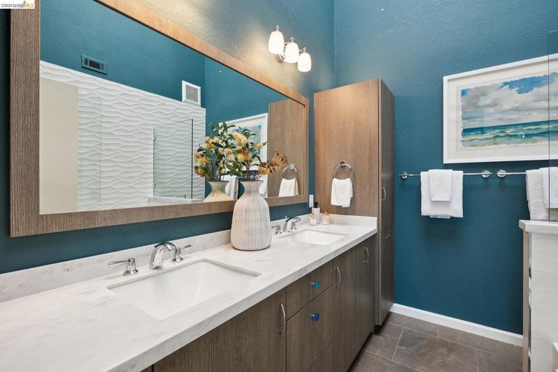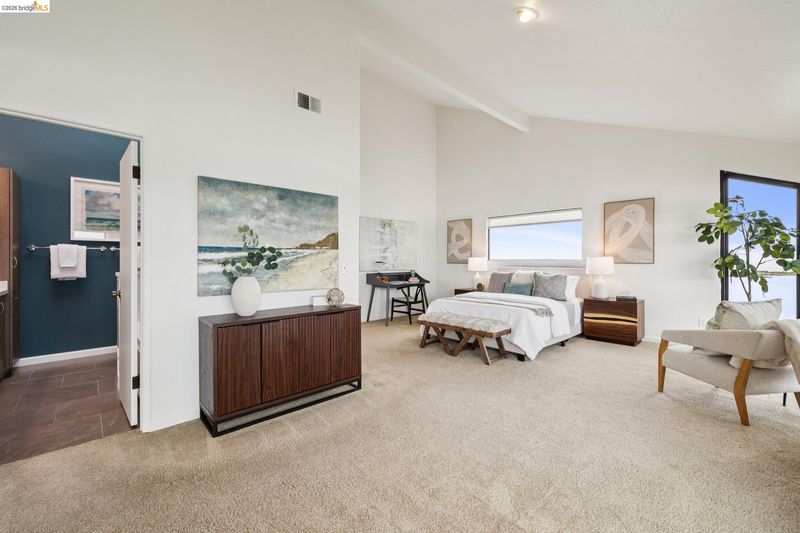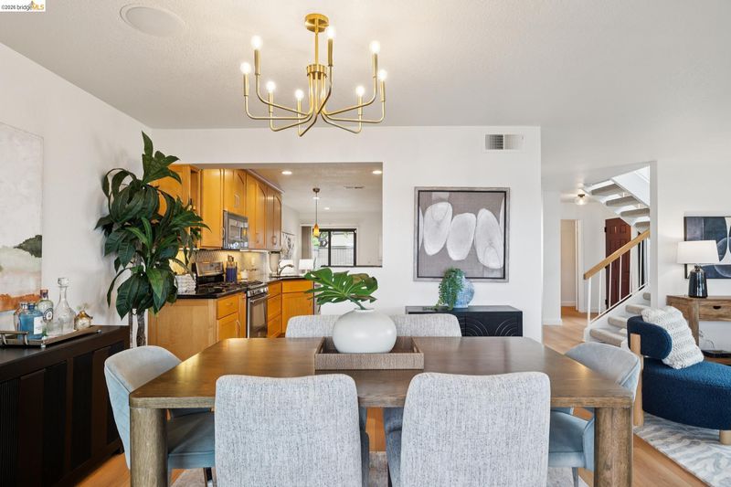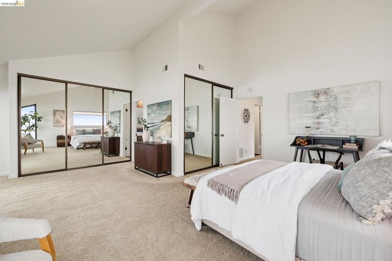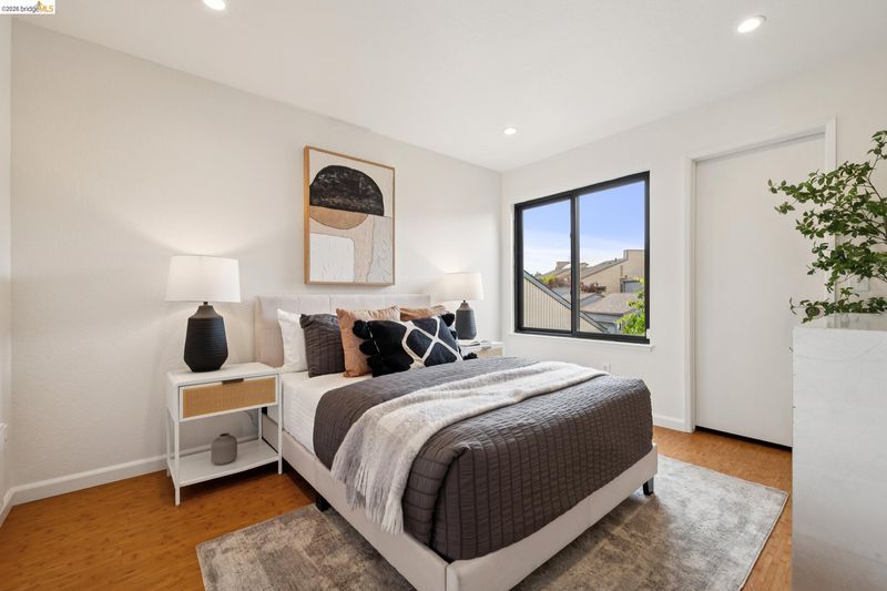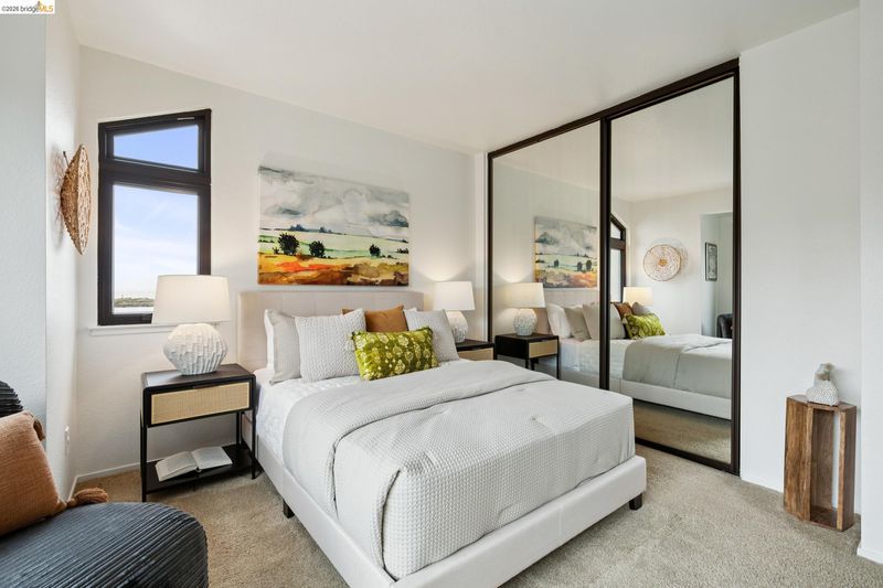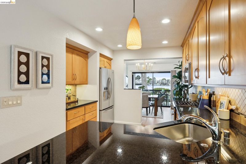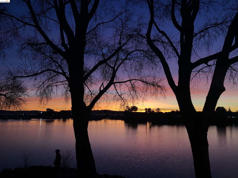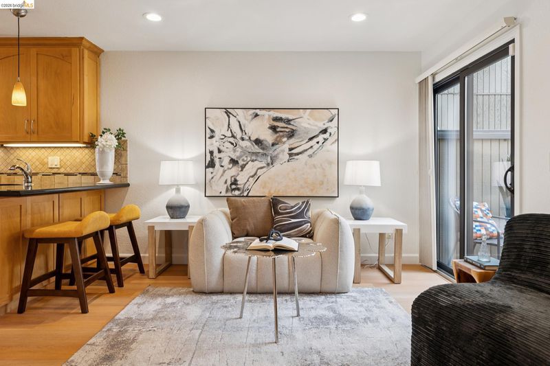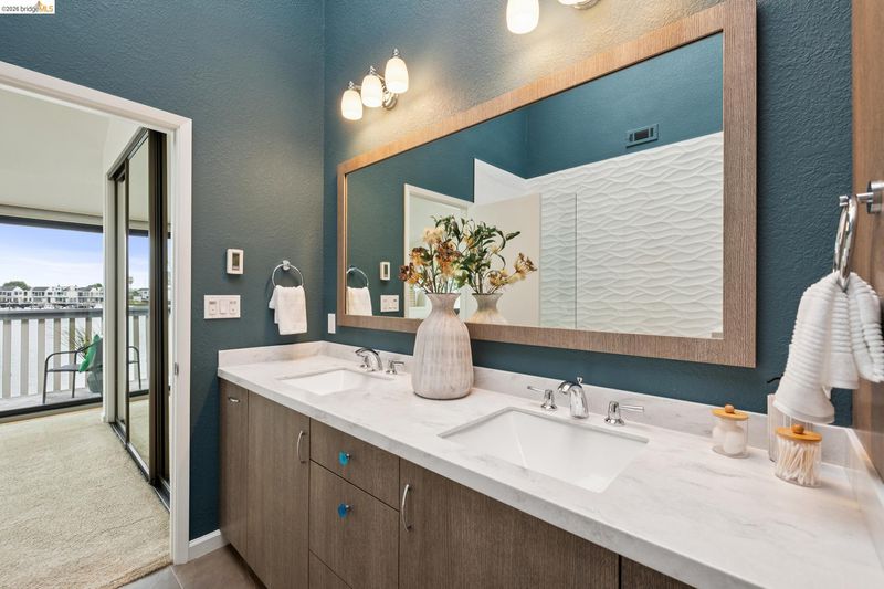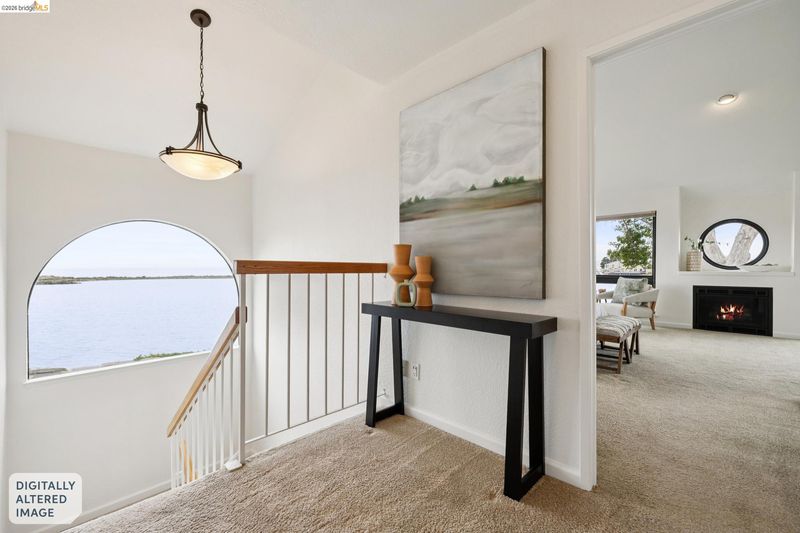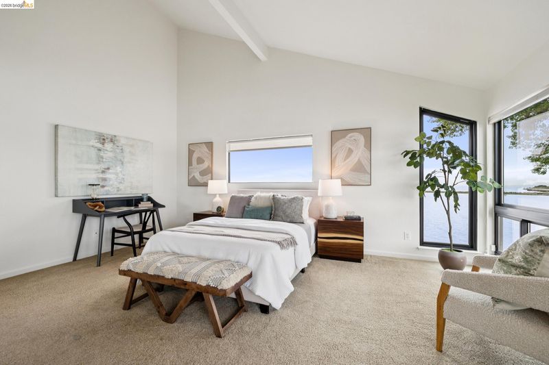 Rare 2-story condo that lives like a single-family home with sweeping views of the marina, SF Bay & Crown Memorial Beach. This light-filled residence offers a seamless floorplan designed to maximize its stunning setting. Features include newer luxury laminate flooring, updated kitchen with stone counters, solid maple cabinetry, stainless appliances, pull-out drawers & under-cabinet lighting. Effortless flow connects dining, side patio, garage & den. Two updated fireplaces add warmth & modern style. Upstairs, the primary suite is a retreat with vaulted ceilings, private view patio, plush carpet & spa-like bath with skylight, radiant heat floors, double sinks & soaking tub designed to retain heat. The updated hall bath serves additional bedrooms. One bedroom opens to a second patio with deep storage. Attached 2-car garage with laundry hookups, built-ins & loft storage. HOA covers exterior maintenance. Close to Webster St shops, restaurants, ferry & freeway access.