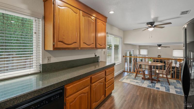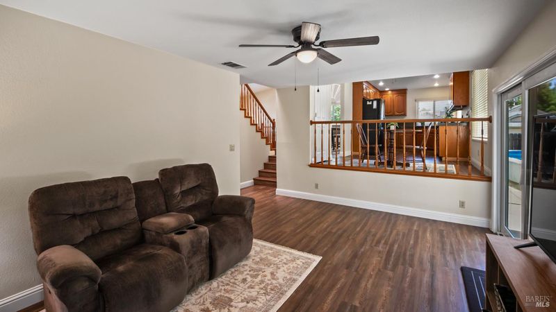 Move-in ready tri-level home on a desirable corner lot in the Meadowlands subdivision. Bright and inviting with vaulted ceilings and abundant natural light from newer Low-E windows. Flexible floor plan with a downstairs bedroom and full bathideal for guests or a home office. The family room features a cozy wood-burning fireplace and slider to the backyard, opening to the kitchen with granite countertops, breakfast area, and large pantry. Upstairs, the primary suite offers vaulted ceilings, a mirrored closet, and an updated bath with walk-in shower and double vanity. Enjoy outdoor living with an insulated patio cover and above-ground pool with a new filter pump. Additional upgrades include LVP flooring in select areas, updated light fixtures, whole house fan, stucco exterior enhancement, A/C replaced in 2022, and furnace replaced in January 2026. Conveniently located near Callison Elementary and Meadowlands Park.