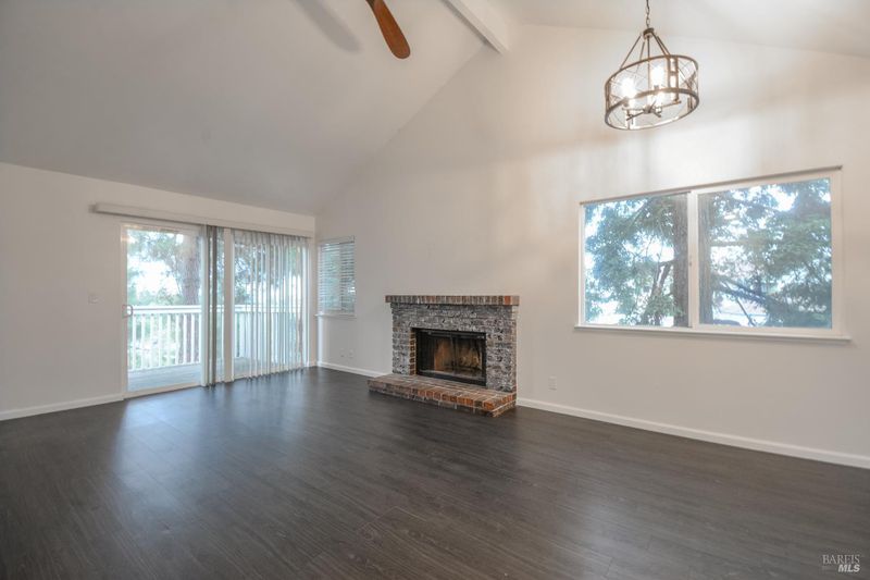 Top floor with soaring vaulted ceilings, corner unit with extra natural light and a deck with views of Suisun Bay! Step inside and you will be greeted by a light and bright open space. A wood burning fireplace is a nice focal point in the living room and adds a touch of warmth to the room. The kitchen features updated cabinets, granite counters, and stainless steel appliances with a refrigerator included! Bedrooms have been re-carpeted with luxury carpet and new pad. Washer and dryer hookups located inside the unit. Large, private deck for relaxing. The 1-car garage is conveniently located right in front of the home. Easy commute location, convenient to shopping and amenities. This home will not last!