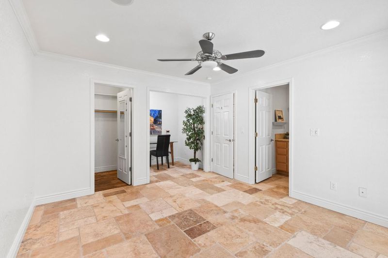 Don't miss out on this immaculate, single-story, end-unit townhome located in the scenic Bluffs community within the Ridgemark Golf Course! This airy and spacious 2 BD/2 BA 1600+ sq ft home features an open space dining room and step-down living room with fireplace. A full wall of windows including a sliding glass door bring in brilliant natural light and provide stunning views of the backyard and open pasture beyond. The kitchen, with a bi-level peninsula for counter dining, is open to a cozy breakfast nook and large adjoining laundry room. The large primary bedroom and ensuite bathroom open to the backyard patio. The second bedroom, with its own ensuite bathroom and office nook, opens to its own private courtyard. The home includes beautiful travertine floors throughout, built-in bookshelves, and a 2-car garage for plenty of storage. The stunning landscaping, all maintained by the HOA, provides a serene setting for this perfect home.