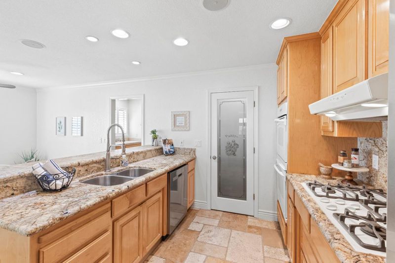 - Countertop - Granite, Dishwasher, Island with Sink, Cooktop - Gas, Garbage Disposal, Hookups - Gas, Hood Over Range, Microwave, Oven - Self Cleaning, Pantry, Exhaust Fan