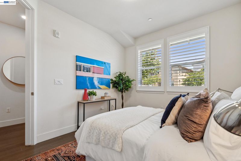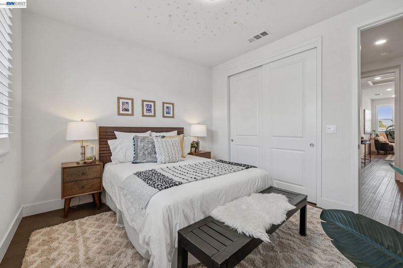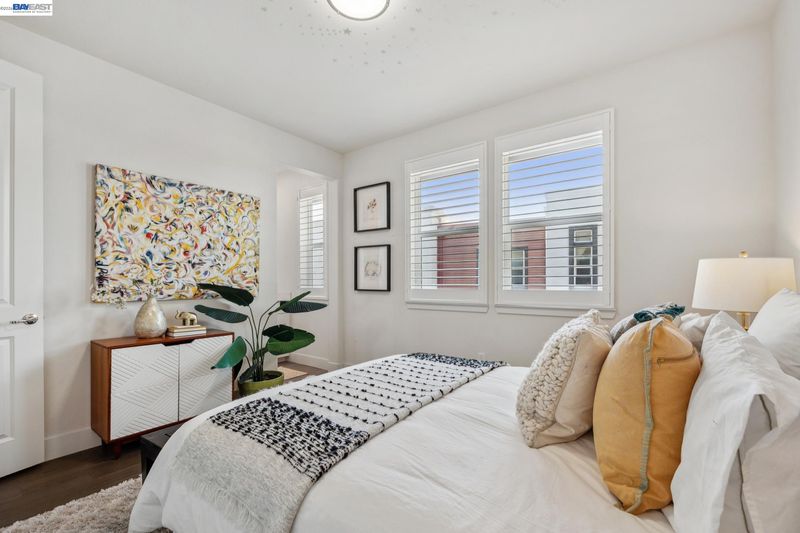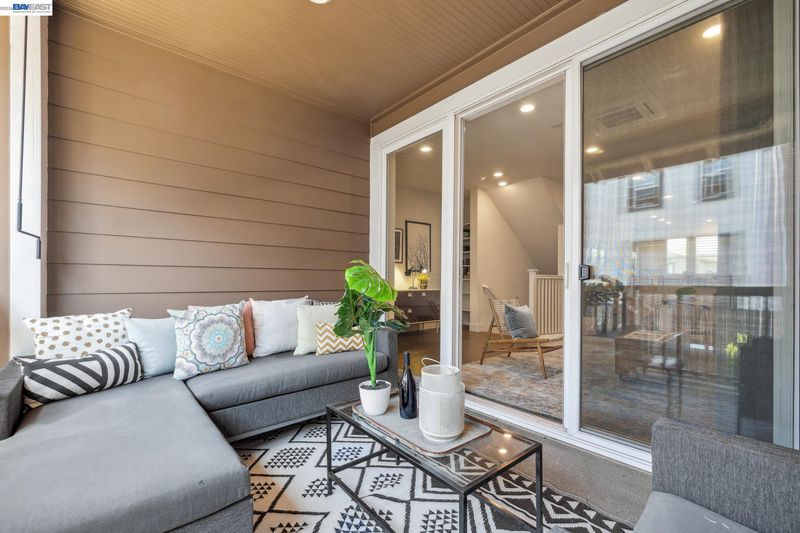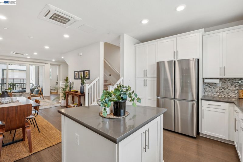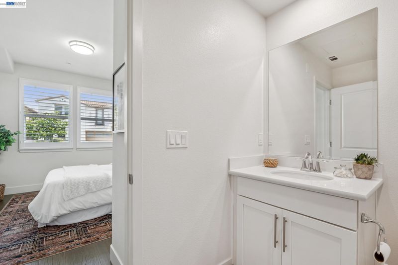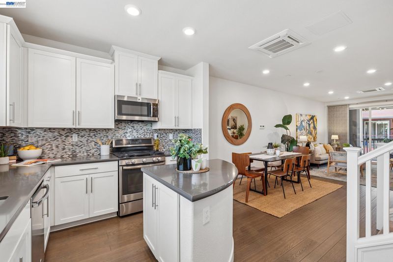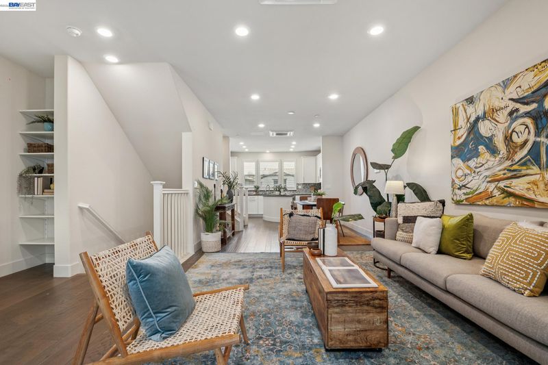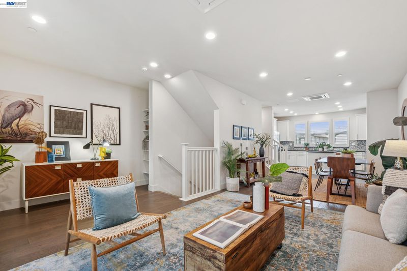 Built in 2016, this 3 bed, 3.5 bath tri-level home offers 1,727 sq ft of thoughtfully designed living space in a prime central location. Each bedroom features its own en suite bathroom, offering ideal privacy and comfort. The first floor features a private bedroom with a full bath, including a stall shower. On the second floor, enjoy an open-concept layout that seamlessly combines the kitchen, dining and living room, along with a convenient half bath. Highlights include recessed lighting, LVP flooring, a built-in bookshelf, and a patio slider to a covered outdoor lounge area. The kitchen is equipped with stainless steel appliances, glass tile backsplash, dark gray quartz countertops and plantation shutters. Upstairs, the primary suite boasts a double vanity and tiled stall shower with a built-in bench. The third bedroom features its own bathroom, complete with a shower over the tub, and the laundry room is conveniently located on this level. The attached two-car garage features epoxy flooring, overhead storage and an EV charger. Enjoy easy access on and off the island via Park St Bridge or Webster/Posey Tube. Close to Marina Cove Park, shops, restaurants and local markets.