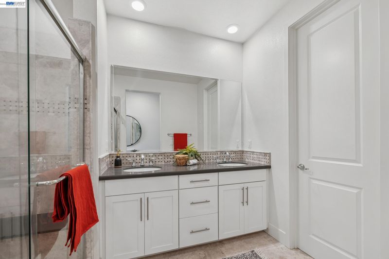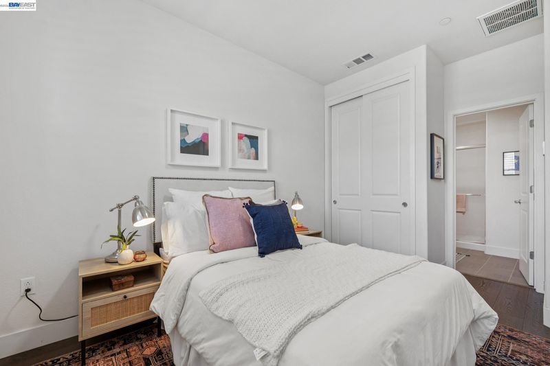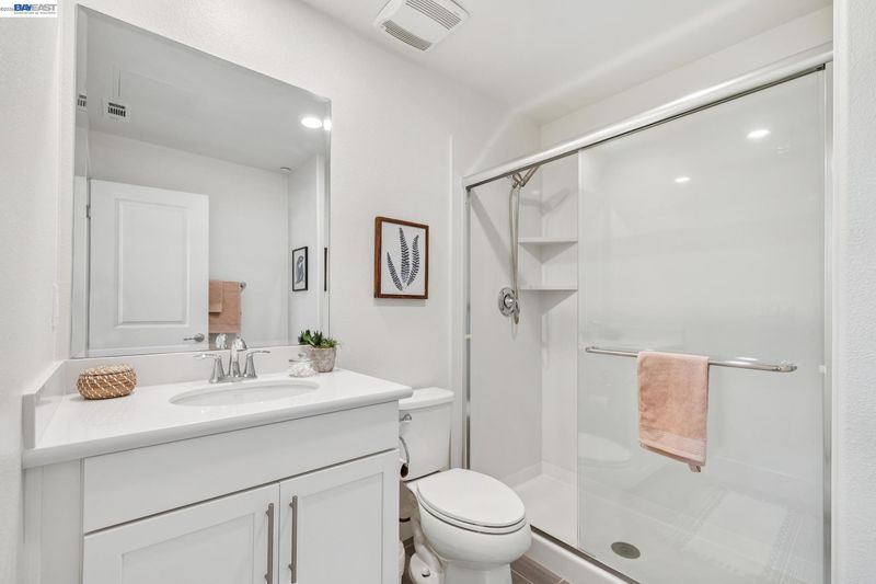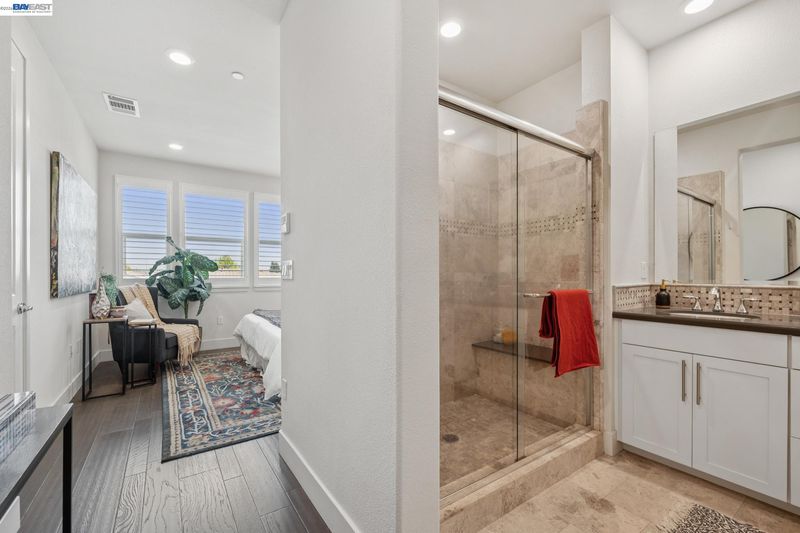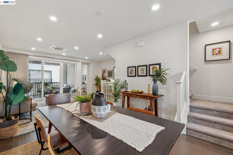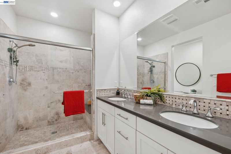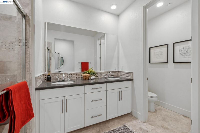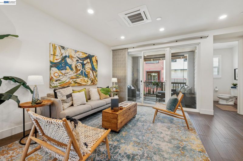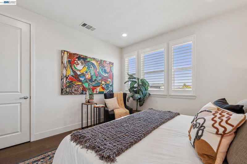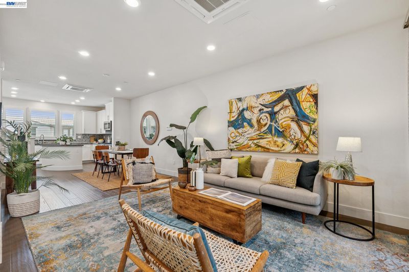 Built in 2016, this 3 bed, 3.5 bath tri-level home offers 1,727 sq ft of thoughtfully designed living space in a prime central location. Each bedroom features its own en suite bathroom, offering ideal privacy and comfort. The first floor features a private bedroom with a full bath, including a stall shower. On the second floor, enjoy an open-concept layout that seamlessly combines the kitchen, dining and living room, along with a convenient half bath. Highlights include recessed lighting, LVP flooring, a built-in bookshelf, and a patio slider to a covered outdoor lounge area. The kitchen is equipped with stainless steel appliances, glass tile backsplash, dark gray quartz countertops and plantation shutters. Upstairs, the primary suite boasts a double vanity and tiled stall shower with a built-in bench. The third bedroom features its own bathroom, complete with a shower over the tub, and the laundry room is conveniently located on this level. The attached two-car garage features epoxy flooring, overhead storage and an EV charger. Enjoy easy access on and off the island via Park St Bridge or Webster/Posey Tube. Close to Marina Cove Park, shops, restaurants and local markets.