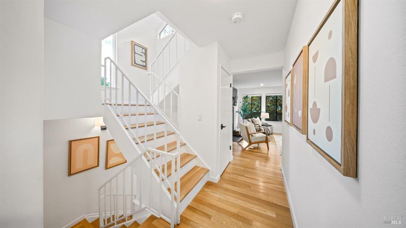Step inside this exceptional end unit home nestled in desirable Cheda Knolls of Novato. Discover a bright, inviting space featuring three spacious bedrooms and two and a half bathrooms. The attached two-car garage offers convenience. This home welcomes you at entry with elegant tile entry floors and stairs leading up to a generous living room complete with a cozy fireplace. The formal dining room seamlessly connects to the living room and opens onto a front deck, perfect for enjoying views of the peaceful cul-de-sac and beyond. The thoughtfully designed kitchen boasts ample cabinetry, a central island, stainless steel appliances, and a sunny breakfast nook. Sliding glass doors lead to a tiled patio and turf area, ideal for year-round outdoor living and entertaining, backs up to open space. Upstairs, the primary suite features a walk-in closet and a beautifully updated ensuite bathroom. Two additional bedrooms and a stylish hall bathroom with modern tilework complete the upper level. Recent upgrades include a newer furnace and air conditioning system with updated ductwork, a newer water heater, dual-pane windows and sliding doors, a three-stage whole-house water filtration system, and a multi-use outlet for electric vehicle charging in the garage. A definite Must See!