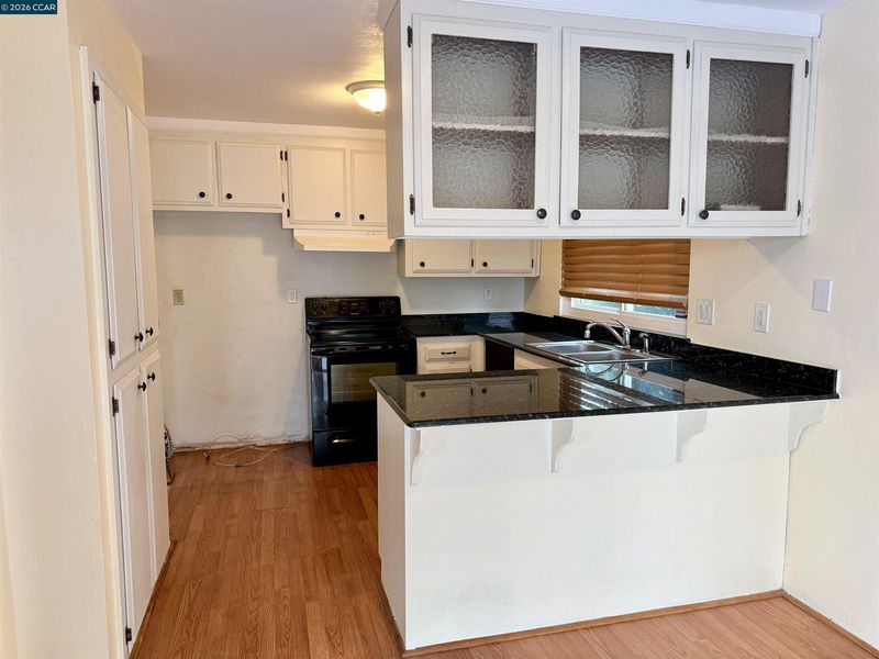 - Free-Standing Range, Dryer, Washer, Breakfast Nook, Counter - Solid Surface, Tile Counters, Disposal, Range/Oven Free Standing