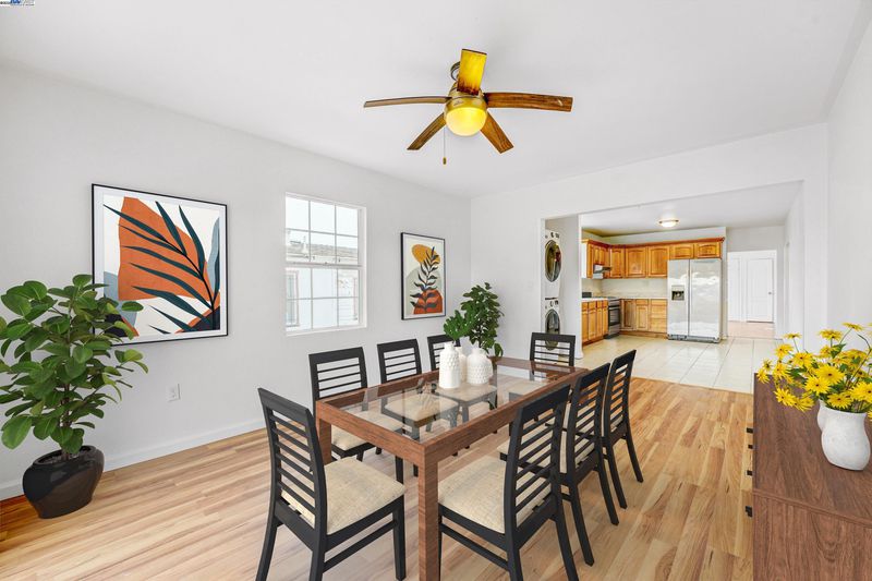 Step into your Oakland glow up. This 3 bed, 2 bath cutie starts strong with a bold red door and bright, airy spaces that instantly feel like good energy. Natural light pours across the laminate floors, and the open layout gives you a spacious living and dining flow that’s perfect for hosting, lounging, or accidentally becoming the friend who always has people over. The kitchen is wide, bright, and ready for action with plenty of cabinet space and room to move. The showstopper is the oversized primary suite, featuring a walk in closet plus a Jacuzzi tub that basically whispers take a break, you deserve it. Slide open the rear door for fresh air, backyard daydreaming, or your morning sip ritual. Located in a lively, growing Oakland neighborhood, you’re minutes from BART, major freeways, the ferry, parks, and local eats. The long driveway handles multiple cars with ease, and the oversized backyard is your blank canvas: garden, gatherings, ADU dreams, you name it. Stylish, spacious, and ready for its next chapter this home is the vibe you’ve been waiting for.