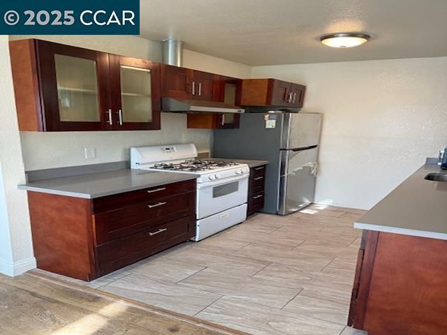 - Gas Range, Free-Standing Range, Refrigerator, Gas Water Heater, Counter - Solid Surface, Stone Counters, Disposal, Gas Range/Cooktop, Range/Oven Free Standing, Updated Kitchen