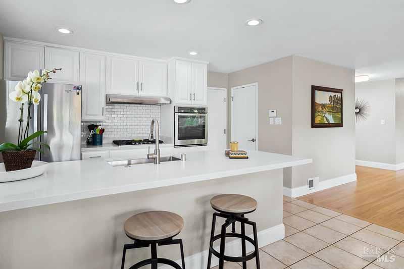 Welcome to 20 Westwood Drive minutes from downtown Novato! This single-story contemporary ranch-style home perfectly fits the one-level living lifestyle you're looking for. The remodeled home features an open-concept Great Room that integrates the kitchen, dining area, and living room into one expansive space. A lovely flow from the dining room to a level patio area creates a seamless transition for indoor-outdoor entertaining, acting as a natural extension of the home's living space. Featuring fully remodeled bathrooms, upgraded kitchen, hardwood floors, new lighting, and lovely landscaped front and backyards with lemon and lime trees. Kitchen with stainless steel appliances, quartz countertops, 5 burner gas range and sitting area bar. All new bathrooms with custom tile, new vanities, tile flooring with radiant heating. Attached two car garage with direct access to interior. This is a winner!
