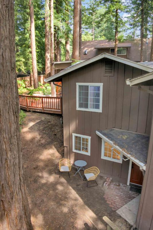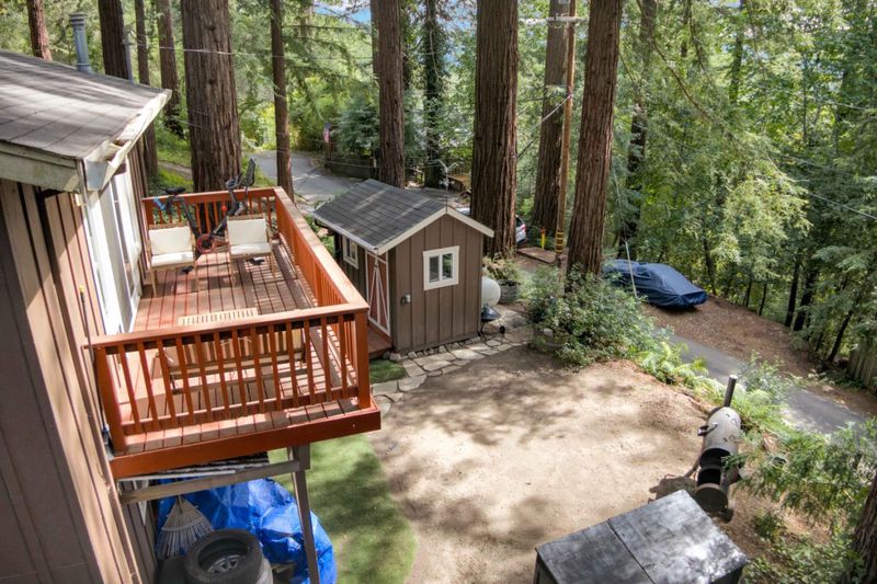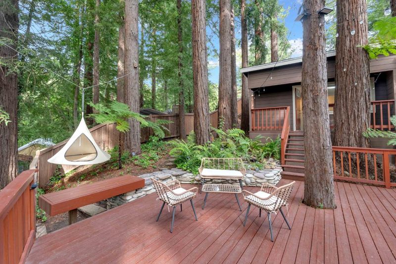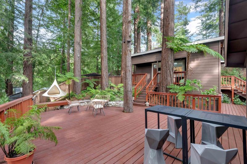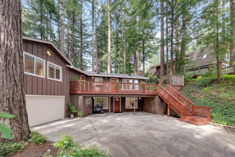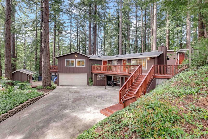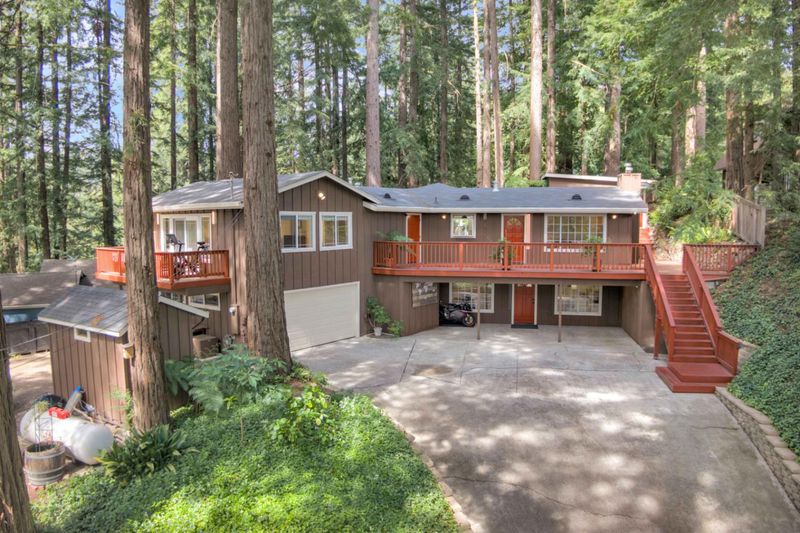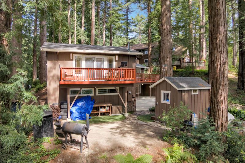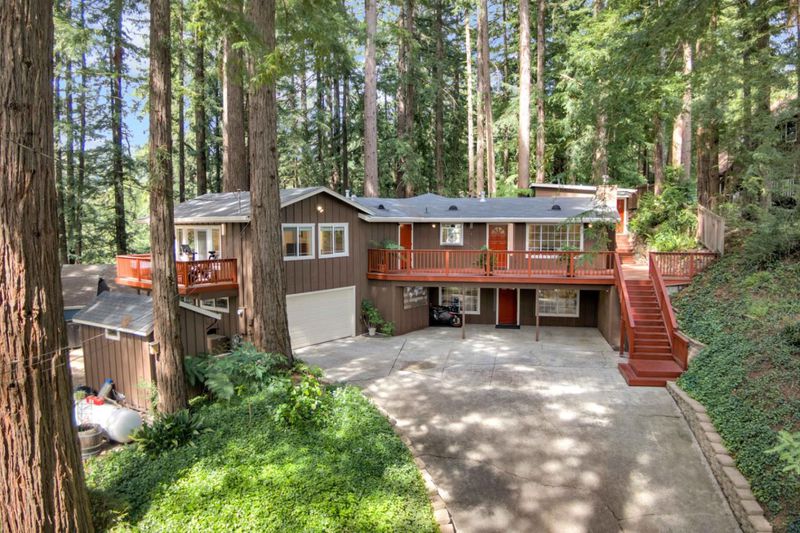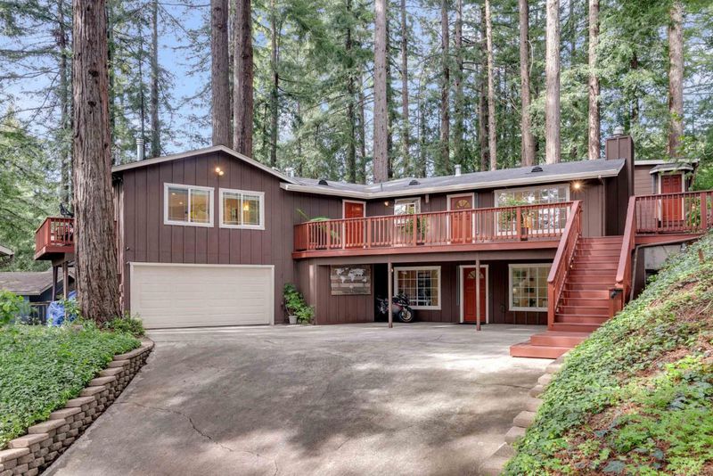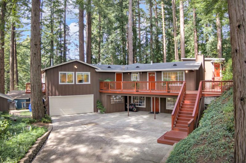 Redwood Canyon Retreat, Mountain Living, Convenience and Lifestyle! Tucked among towering redwoods yet just 15 minutes to Los Gatos, 20 minutes to Santa Cruz, and with easy access to Hwy 17 via the Glenwood cutoff, this beautifully remodeled 3-bed, 3-bath mountain home delivers serenity without sacrificing convenience. Vaulted ceilings, wolf appliances, quartz countertops, hardwood floors, and three fireplaces set the tone inside, while sweeping redwood decks and forest views complete the picture outside. The primary suite is a spacious retreat featuring a stone fireplace, hardwood floors, private deck access with redwood forest views, and a full en-suite bath. The flexibility here is exceptional: the lower level can function as a self-contained 1-bed/1-bath unit, and a permitted guest cottage in the rear adds a fully equipped studio live in the main home and generate income from two separate units simultaneously. 2-car garage with workshop, spacious parking, auto sprinklers, and BBQ area round out the package. Top-rated Scotts Valley schools. Mountain escape. City access. Income potential. Rarely does one property deliver all three.