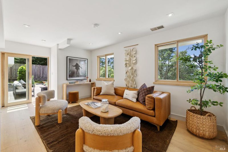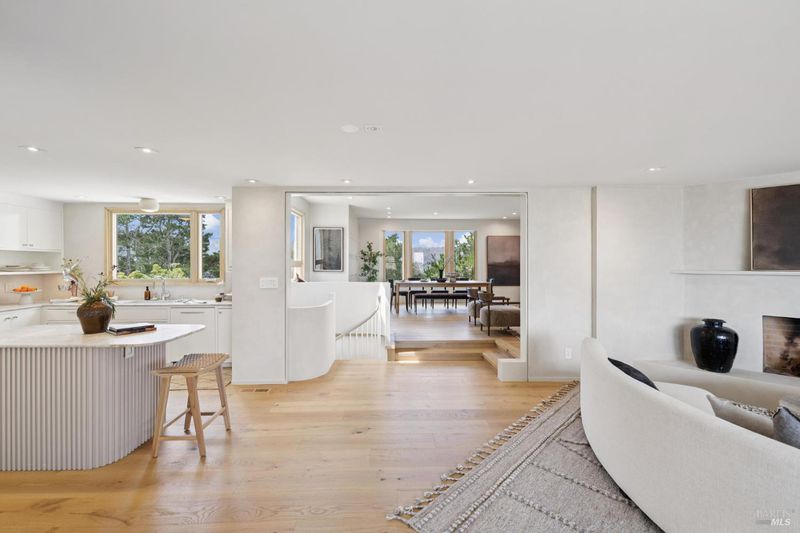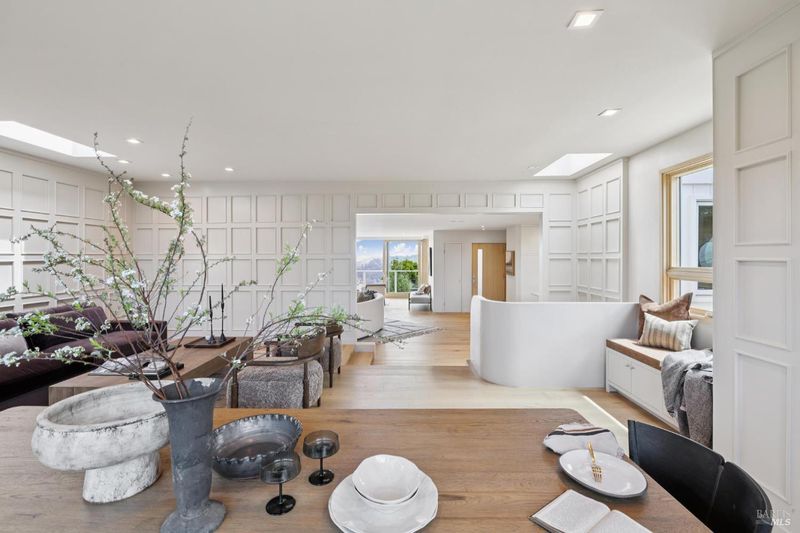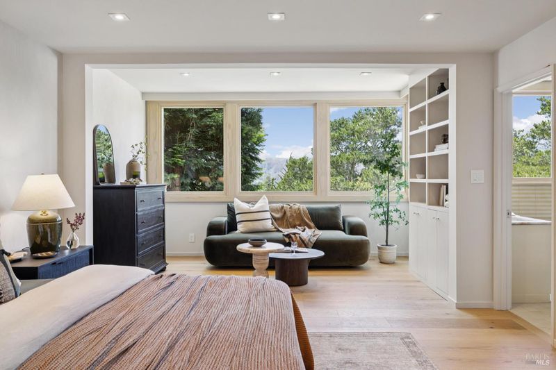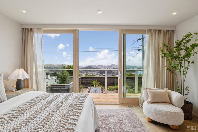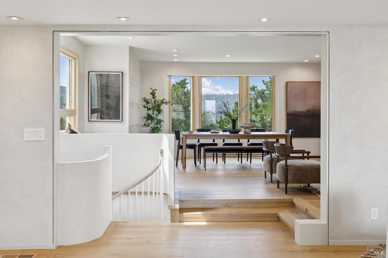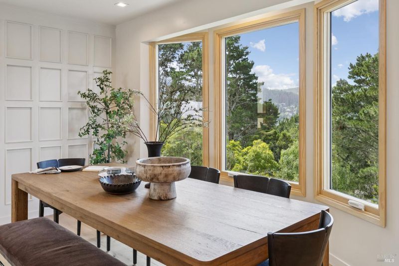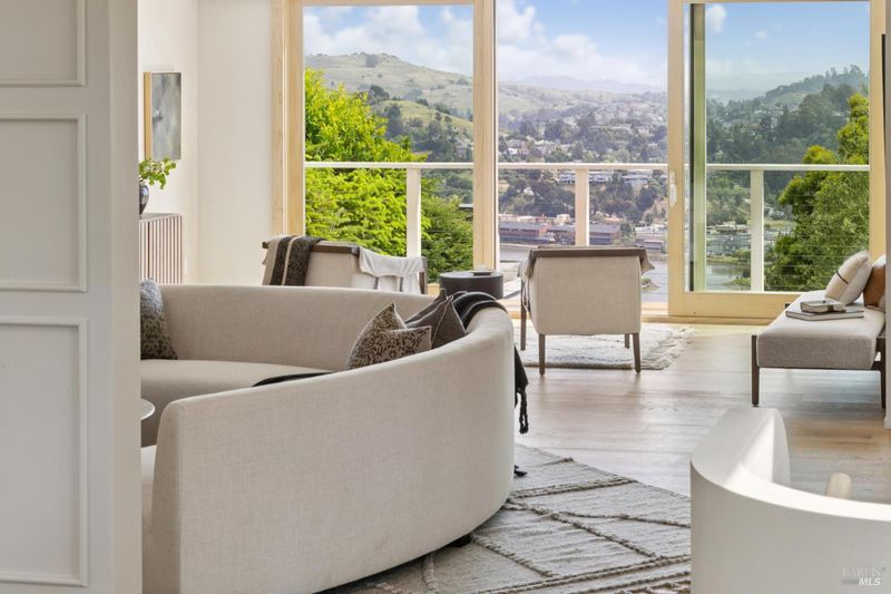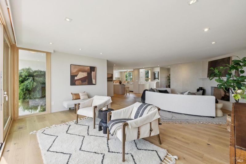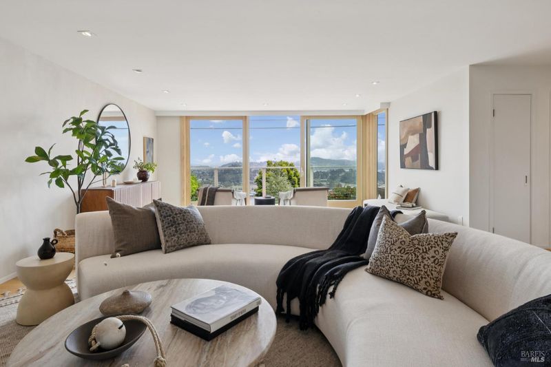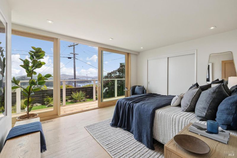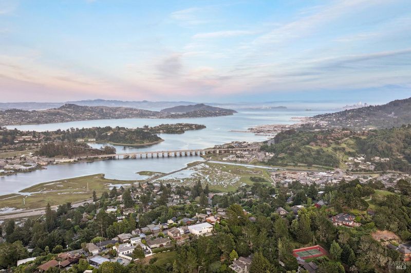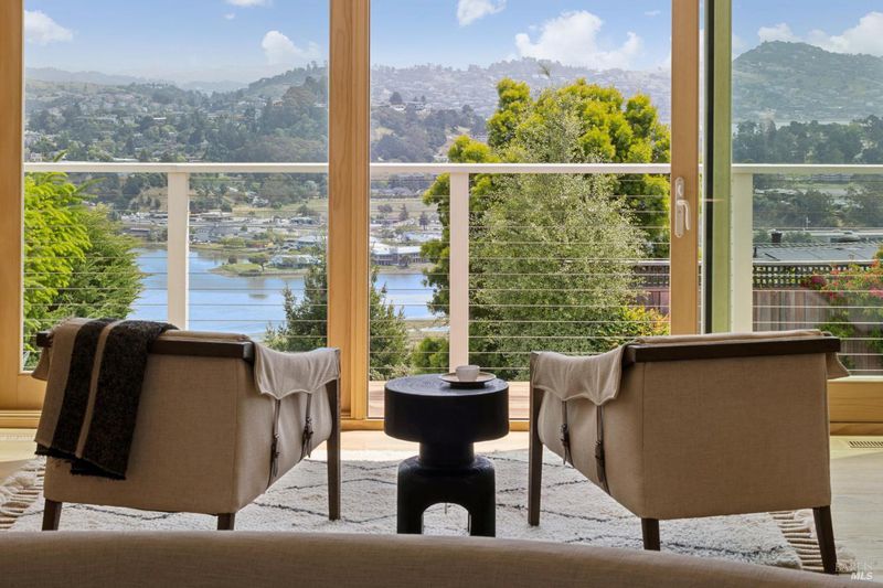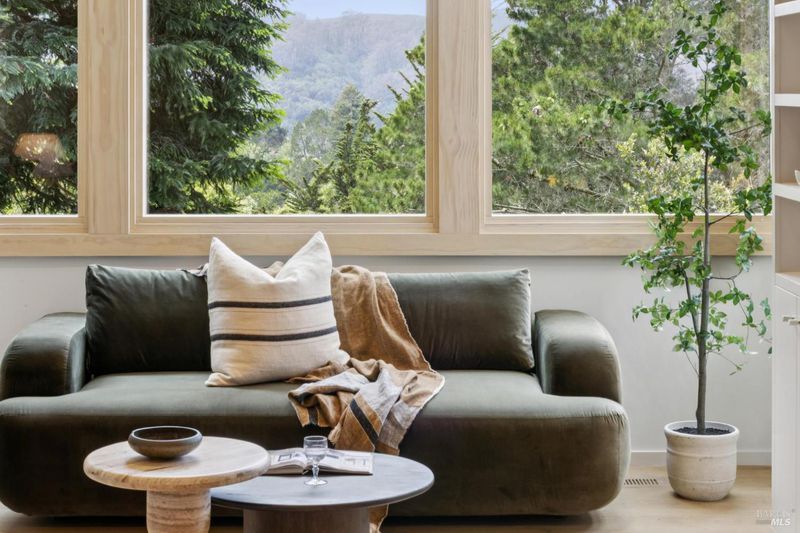 This is it. Come experience the light + mid-century lines, marvel at the design + intricate custom details, & take in the Bay from the far north to the SF skyline while simultaneously marveling at Mt. Tam, & the expanse of Golden Gate National Recreation Open Space out the back. This reimagined yet classically engaging mid century modern home has been extensively remodeled with an elusive level of design detail. Clean lines + walls of glass frame exceptional, light-filled vistas from sunrise to sunset. A home that immediately conveys a balance between sophisticated, design-forward aesthetics + cozy comfort. An inspirational ease flows throughout the home. From the thoughtful layout of the open floor plan stunning kitchen to the expansive entertaining area anchored by the fireplace, the multiple family rooms, & the well-laid-out bedrooms-all on the main floor-it both feels & flows just right. Nearly every room offers a different perspective of light + views. Intricate details + woodwork can be found from the smallest of spaces in the mud room & the spa-like baths, to the grandness of the family room. This is a home where every room beckons you to pause & appreciate what elevated design can achieve. Generous outdoor spaces off the front & back of the home offer a feeling of extension of the living spaces, w/ room to soak in the sun, play, & explore. The largely level land that hosts this home is on one of the most coveted streets in a beloved neighborhood. Almonte's Stanford is a knolltop area where neighbors stroll from park to park, & a regular Sunday coffee meetup offers a sense of community. Hawk Hill in one direction, Mt. Tam School in the other. If you know, you know! If you have not experienced this sweet hamlet, come on up. This perfectly perched home offers a feeling of being somewhere very special & above it all, yet connected to the vibrancy + energy of the surrounding wild spaces as well as the urban & cultural hubs in sight. At times, you might feel the call of mountain trails as strongly as the tug of the twinkling SF skyline nightlife. This property has options. For a short drive just up the hill from the bustling junction in one of Southern Marin's most accessible locations, you're rewarded with the feeling of quiet and community. Hip and happening Tam Junction offerings include Hook Fish, The Junction, Good Earth, shopping, activities galore, Tam Valley's coveted public Elementary school, parks, & a waterfront bike path. This is the life.