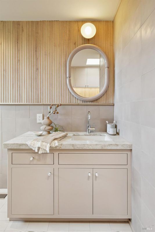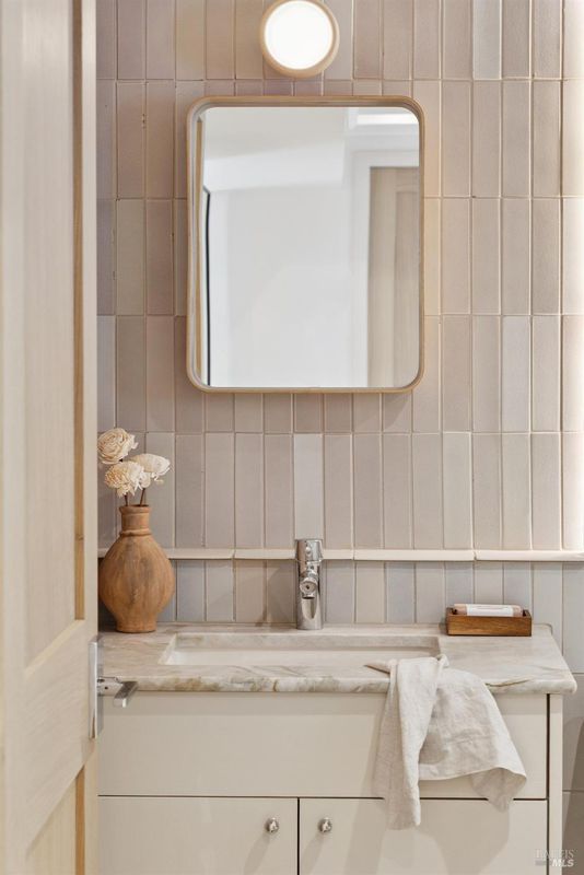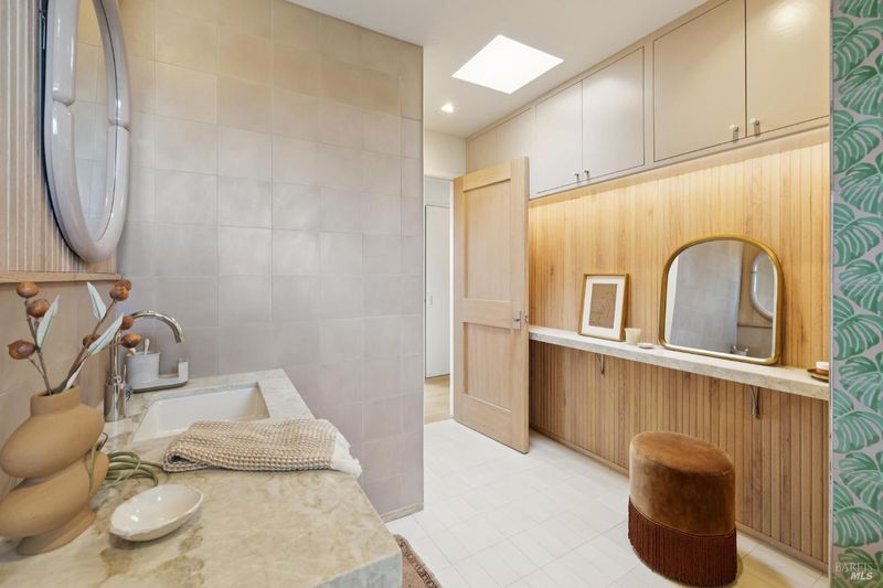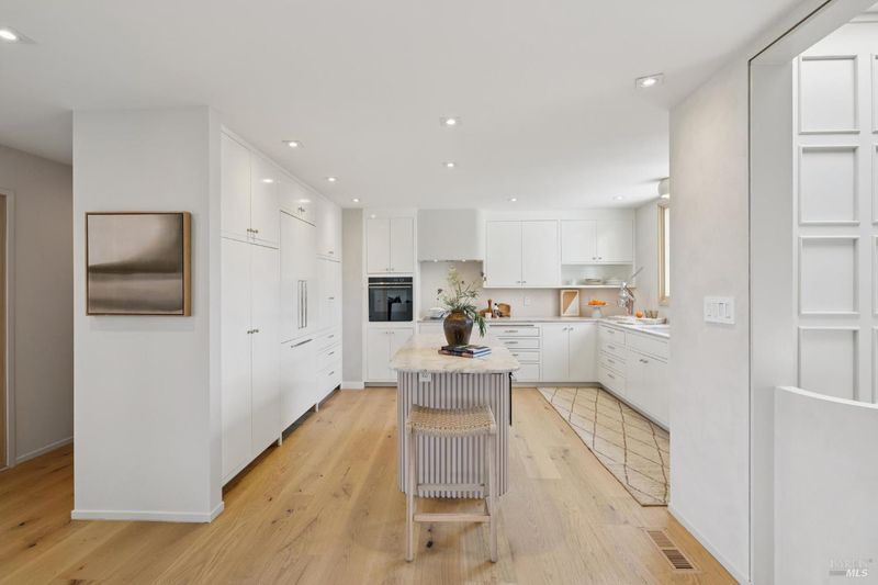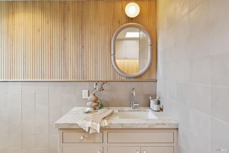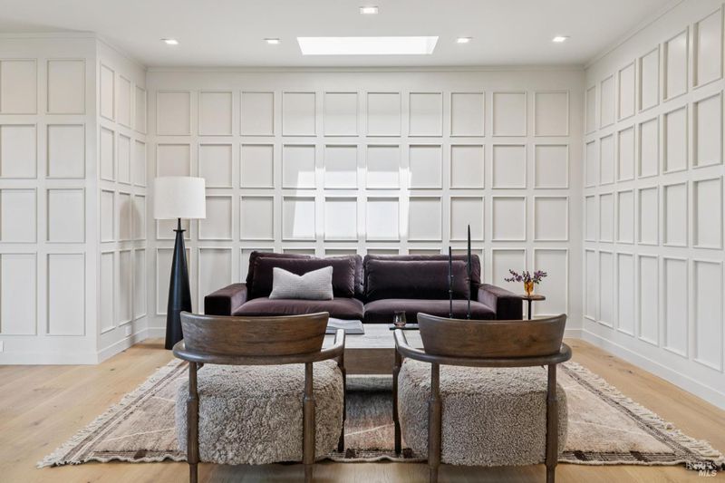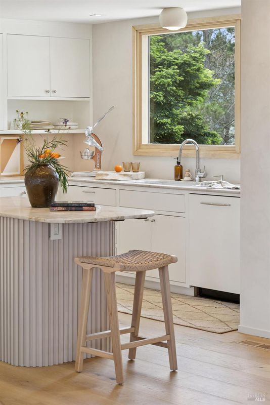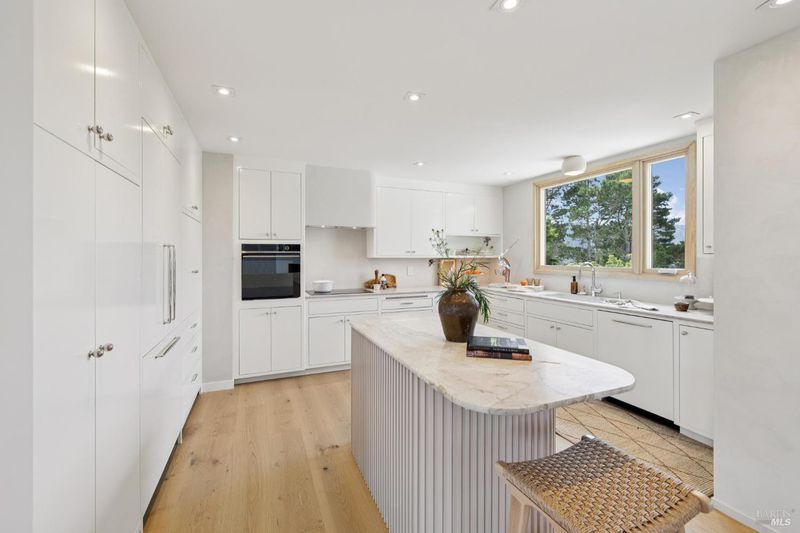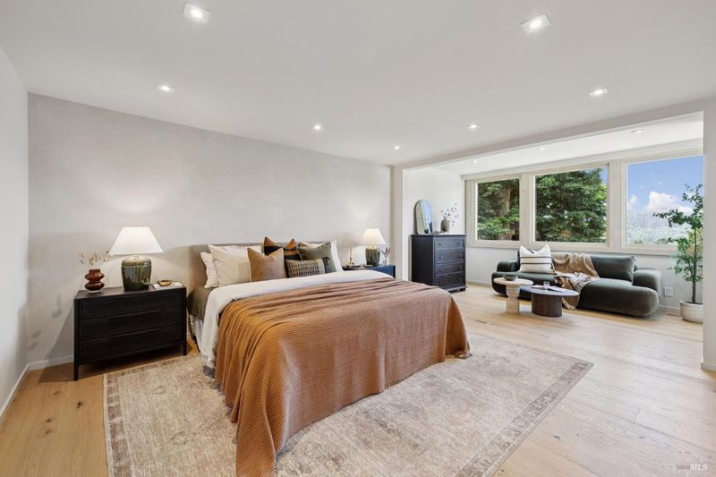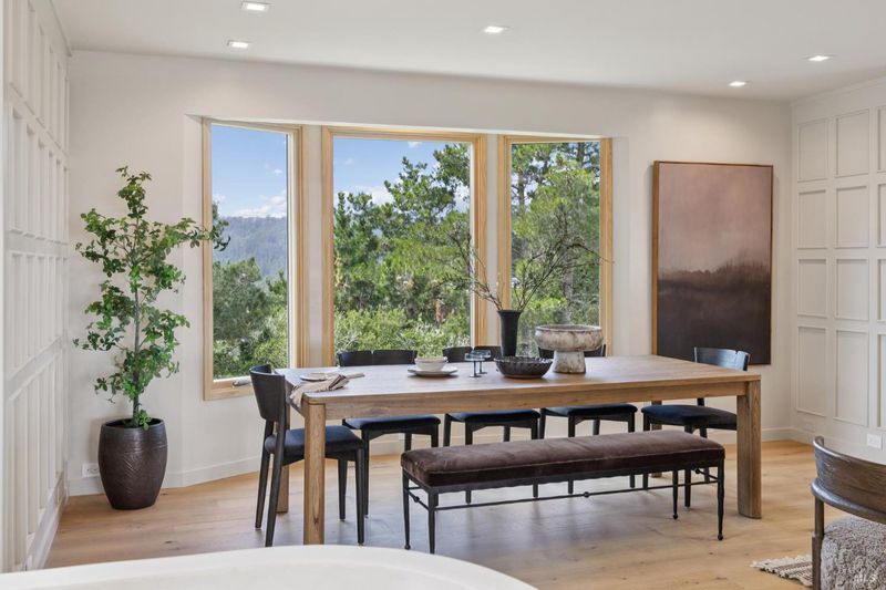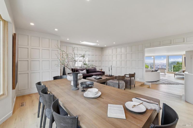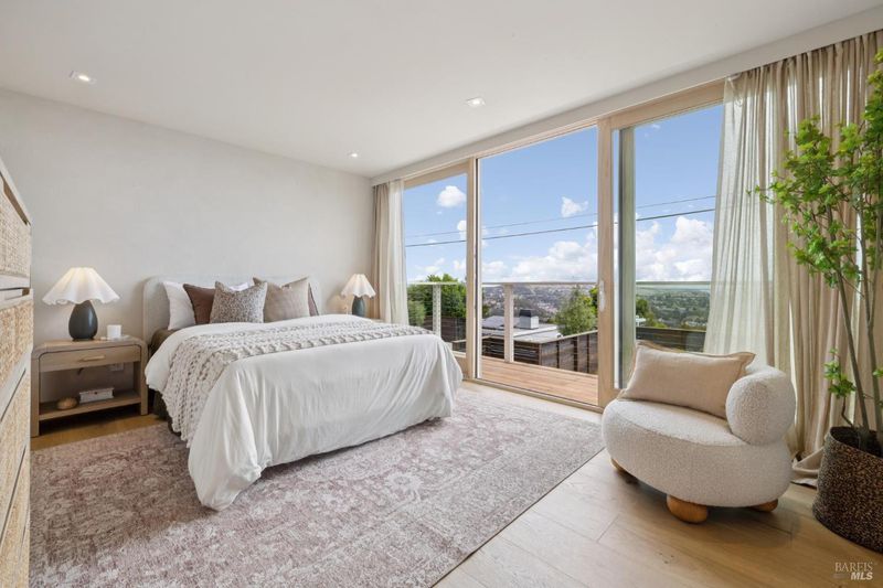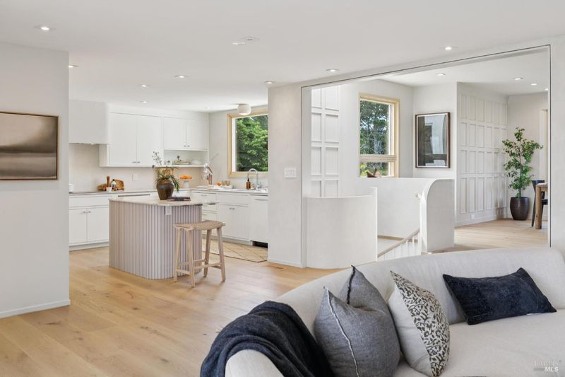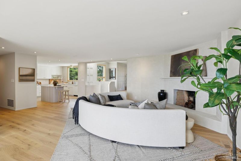 This is it. Come experience the light + mid-century lines, marvel at the design + intricate custom details, & take in the Bay from the far north to the SF skyline while simultaneously marveling at Mt. Tam, & the expanse of Golden Gate National Recreation Open Space out the back. This reimagined yet classically engaging mid century modern home has been extensively remodeled with an elusive level of design detail. Clean lines + walls of glass frame exceptional, light-filled vistas from sunrise to sunset. A home that immediately conveys a balance between sophisticated, design-forward aesthetics + cozy comfort. An inspirational ease flows throughout the home. From the thoughtful layout of the open floor plan stunning kitchen to the expansive entertaining area anchored by the fireplace, the multiple family rooms, & the well-laid-out bedrooms-all on the main floor-it both feels & flows just right. Nearly every room offers a different perspective of light + views. Intricate details + woodwork can be found from the smallest of spaces in the mud room & the spa-like baths, to the grandness of the family room. This is a home where every room beckons you to pause & appreciate what elevated design can achieve. Generous outdoor spaces off the front & back of the home offer a feeling of extension of the living spaces, w/ room to soak in the sun, play, & explore. The largely level land that hosts this home is on one of the most coveted streets in a beloved neighborhood. Almonte's Stanford is a knolltop area where neighbors stroll from park to park, & a regular Sunday coffee meetup offers a sense of community. Hawk Hill in one direction, Mt. Tam School in the other. If you know, you know! If you have not experienced this sweet hamlet, come on up. This perfectly perched home offers a feeling of being somewhere very special & above it all, yet connected to the vibrancy + energy of the surrounding wild spaces as well as the urban & cultural hubs in sight. At times, you might feel the call of mountain trails as strongly as the tug of the twinkling SF skyline nightlife. This property has options. For a short drive just up the hill from the bustling junction in one of Southern Marin's most accessible locations, you're rewarded with the feeling of quiet and community. Hip and happening Tam Junction offerings include Hook Fish, The Junction, Good Earth, shopping, activities galore, Tam Valley's coveted public Elementary school, parks, & a waterfront bike path. This is the life.