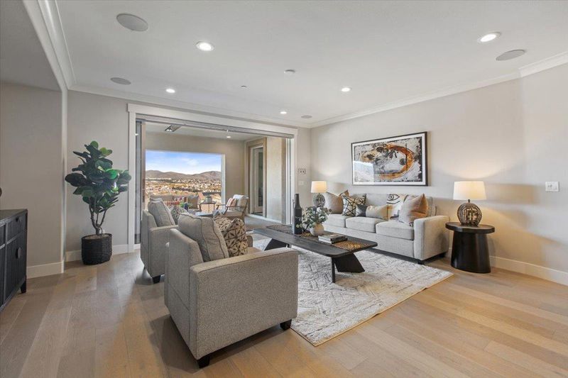 Discover the perfect blend of luxury, innovation, and comfort in this upgraded turnkey home located in Gale Ranch's coveted Carmela neighborhood. Showcasing panoramic views of Mt. Diablo and access to top-rated schools, this residence redefines modern California living with over $900,000 in designer upgrades. Elegant high ceilings, custom finishes, and a seamless open layout create a sense of timeless sophistication from the moment you step inside. The gourmet chefs kitchen is a statement of artistry and function, featuring Quartzite countertops, Sub-Zero appliances, and a Wolf range, flowing effortlessly into the great room with a sleek linear fireplace and 90-degree panoramic doors that extend to a covered loggia-complete with outdoor kitchen, BBQ, and space heaters ideal for year-round entertaining. A main-level ensuite bedroom offers flexibility for guests, multi-generational living, or a private home office. Upstairs, enjoy a versatile loft with stunning balcony views, three additional ensuite bedrooms, and a primary suite with a retreat and a spa-inspired bath that evokes pure serenity. Advanced smart home automation, CAT-6 networking, 7.1 surround sound, an LG OLED TV, owned solar panels, and a 3-car tandem garage with dual EV chargers complete this extraordinary residence