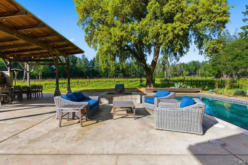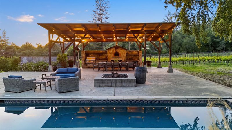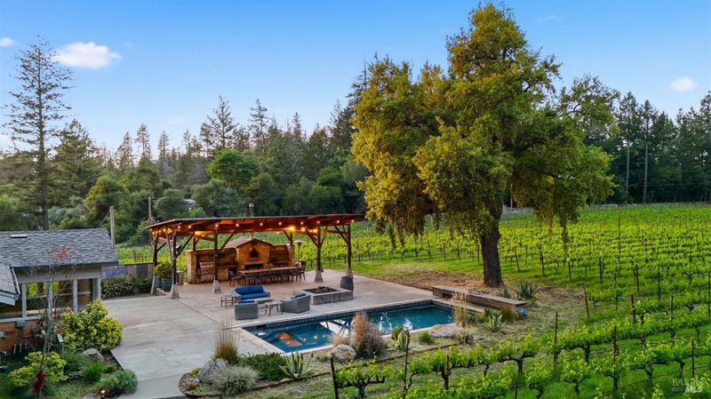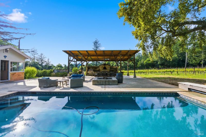 Few properties offer this combination. Twenty acres in the heart of wine country, with 5.5 acres of organically farmed Howell Mountain Cabernet Sauvignon vineyards known for producing highly acclaimed wines. Whether you're looking to expand an existing label or start your own boutique brand, the estate comes with a Napa County winery use permit allowing up to 20,000 gallons of annual production. The 4-bedroom, 3-bath main residence is comfortable and well-appointed, with a hot tub and outdoor fire pit for relaxed evenings. A separate pool house includes an office and half-bath easily convertible back to a bedroom and full bath offering a degree of flexibility. Ideal for hospitality or extra guest space. Outdoor entertaining is well thought out: a large heated pool, gas fire pit, built-in BBQ, and stone pizza oven under a generous covered pavilion. It's a setup that lends itself naturally to the unhurried pace of Napa Valley living, just minutes from the restaurants and shopping of downtown St. Helena.