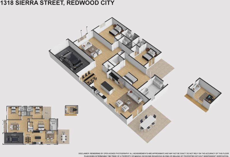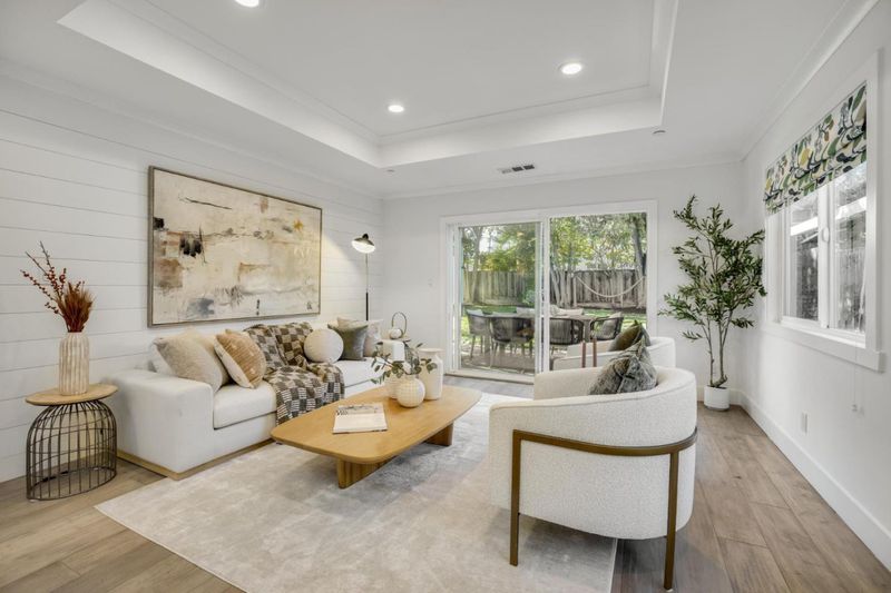 Modern and Gorgeous beautifully reimagined Redwood City home showcasing a stunning 2018 full remodel and an airy, modern open floor plan. This thoughtfully designed residence features 3 bedrooms and 3.5 bathrooms, including a spacious primary suite and two additional ensuite bedrooms, ensuring comfort and privacy for all. Natural light pours in through dual-pane windows, large skylights, and raised ceilings in the entry, living, dining, and family rooms, creating a bright and inviting atmosphere throughout. The modern open kitchen serves as the heart of the home, offering abundant workspace and effortless flow for everyday living and entertaining. Enjoy year-round comfort with central heating and cooling, and extend your living space outdoors with the homes massive park-like backyard a rare and tranquil retreat. A beautifully finished detached artist studio/office/den provides the perfect flexible space for creative work, remote meetings, or peaceful relaxation. This is a home where contemporary style meets exceptional functionalitymove-in ready and designed to impress.